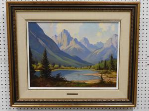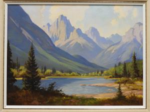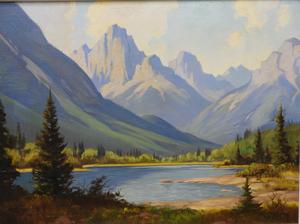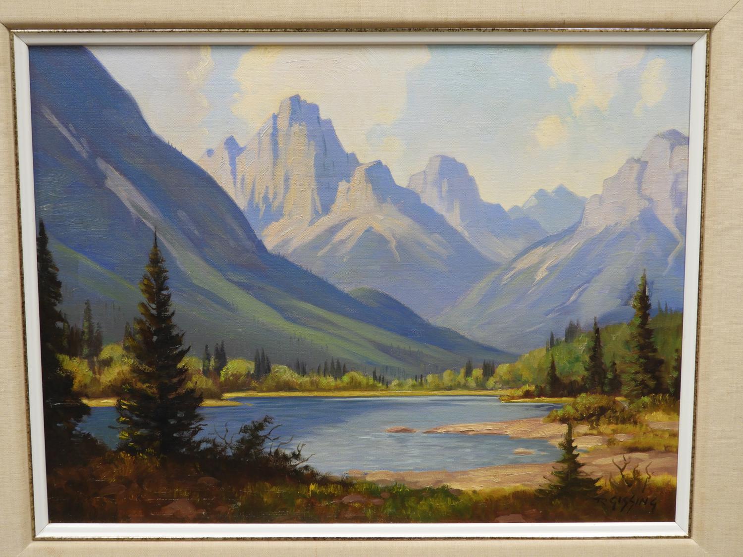 roland gissing (1895-1967), oil on canvas, d.1962, 18" x 24", vermillion lake"