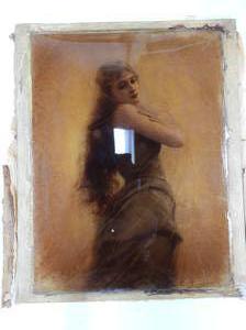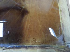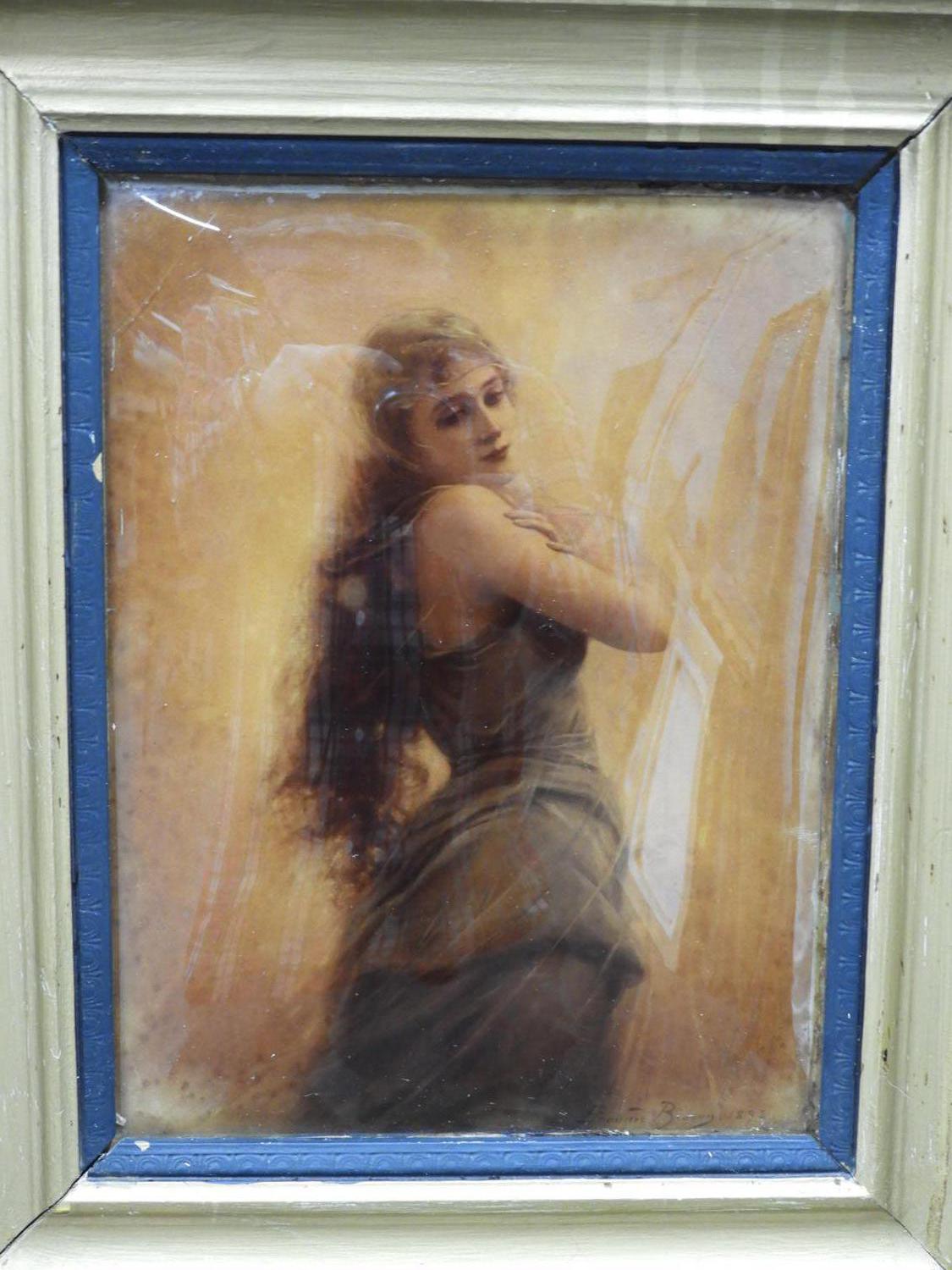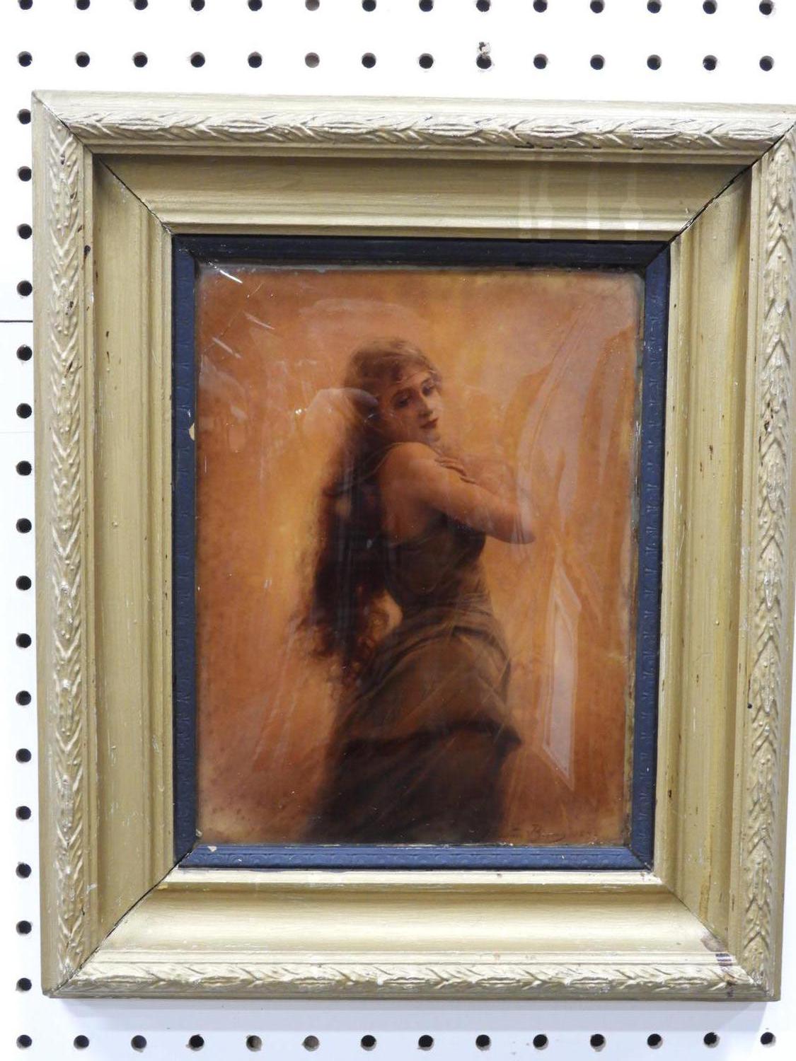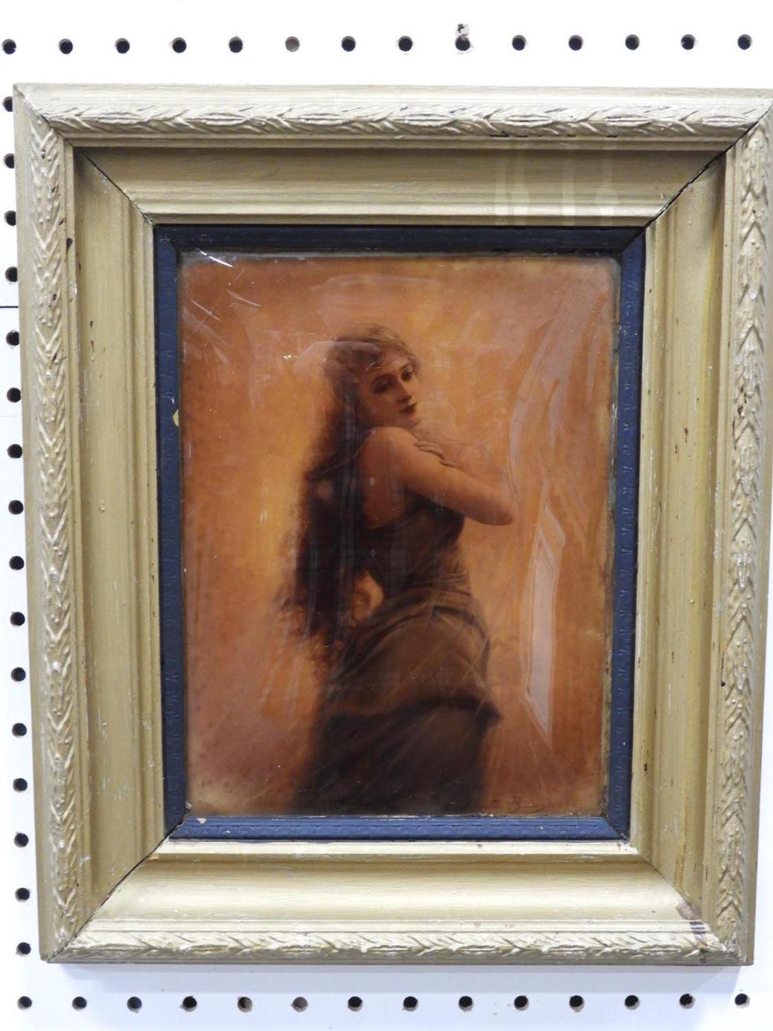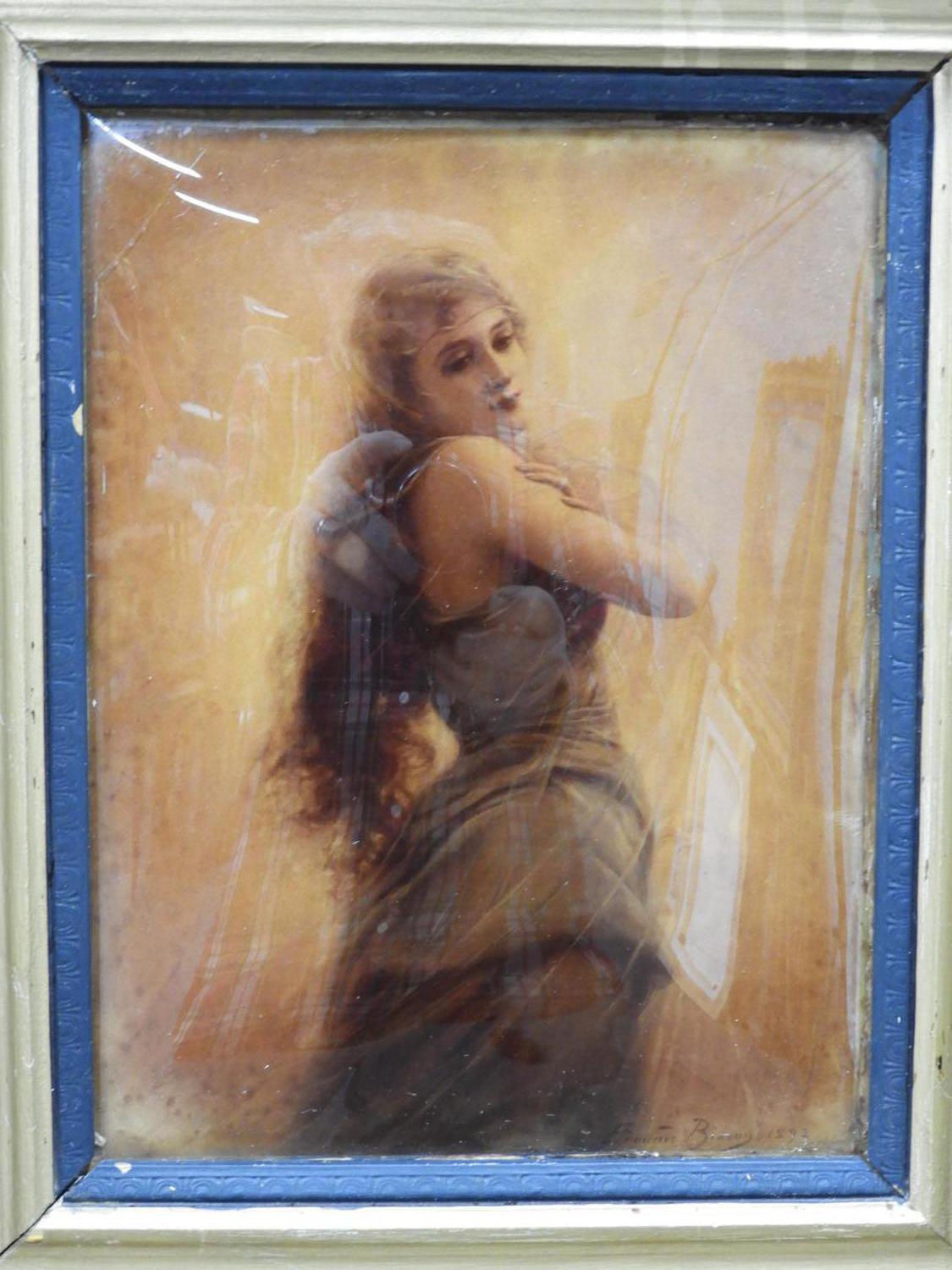 edouard bisson (1856-1939), d.1892, reverse painting on glass, 10 1/2" x 7 1/2", "woman and child"