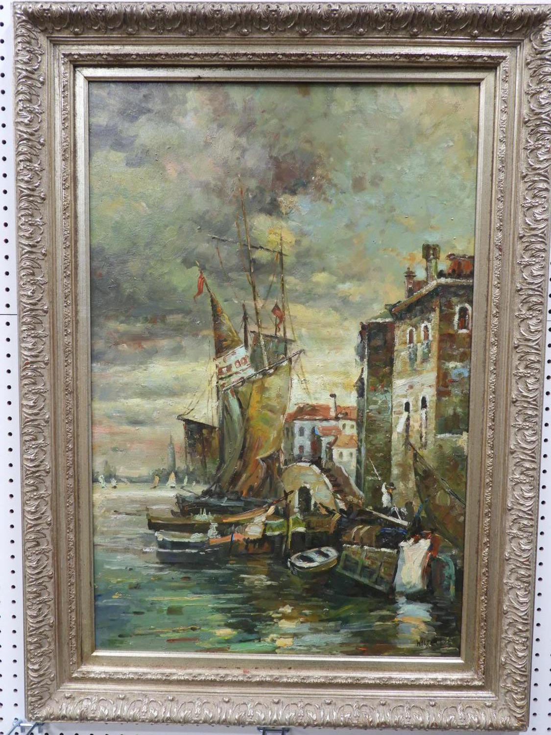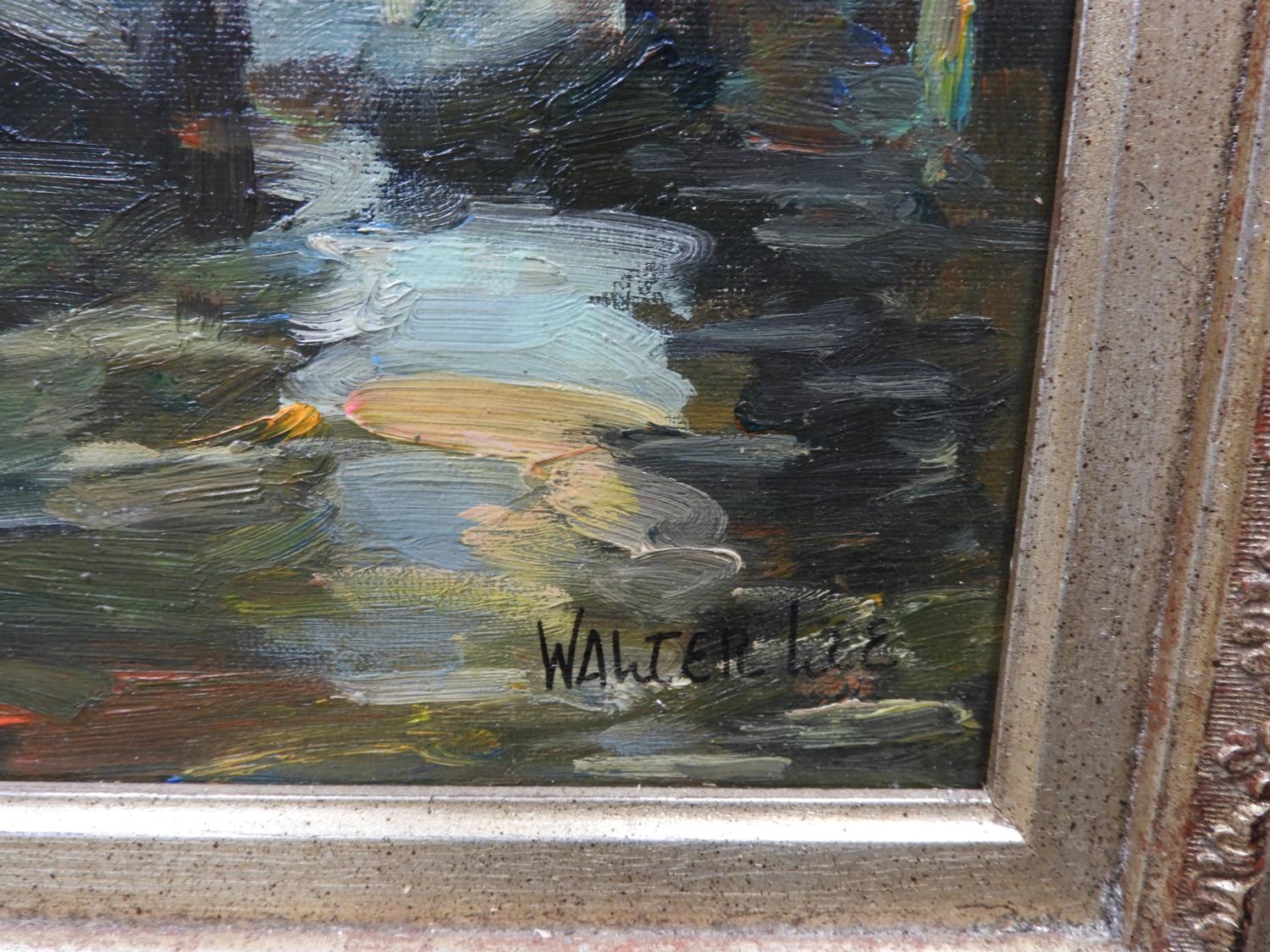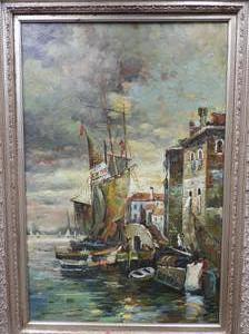 walter lee, oil on canvas, 36" x 24", "harbour scene"
