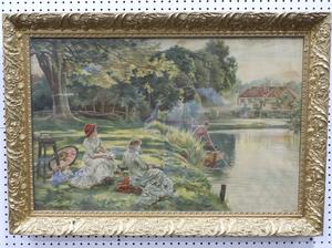 after sydney muschamp, d.1885, chromo-lithograph, 22" x 34", "summer in the park"