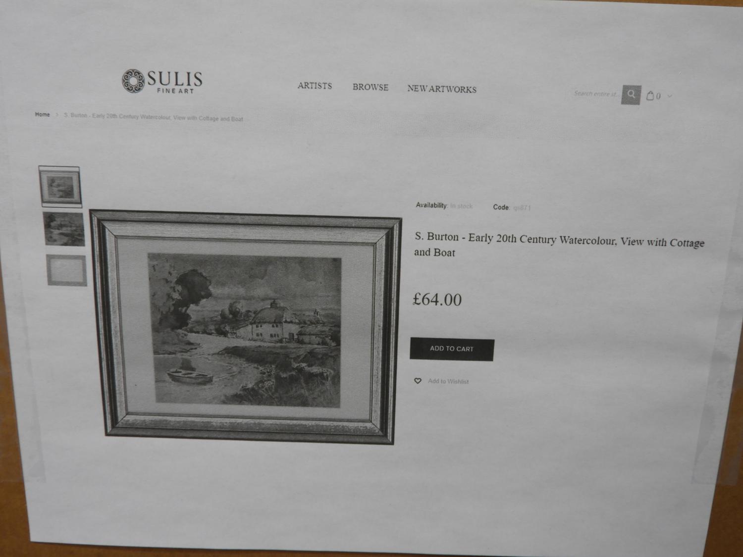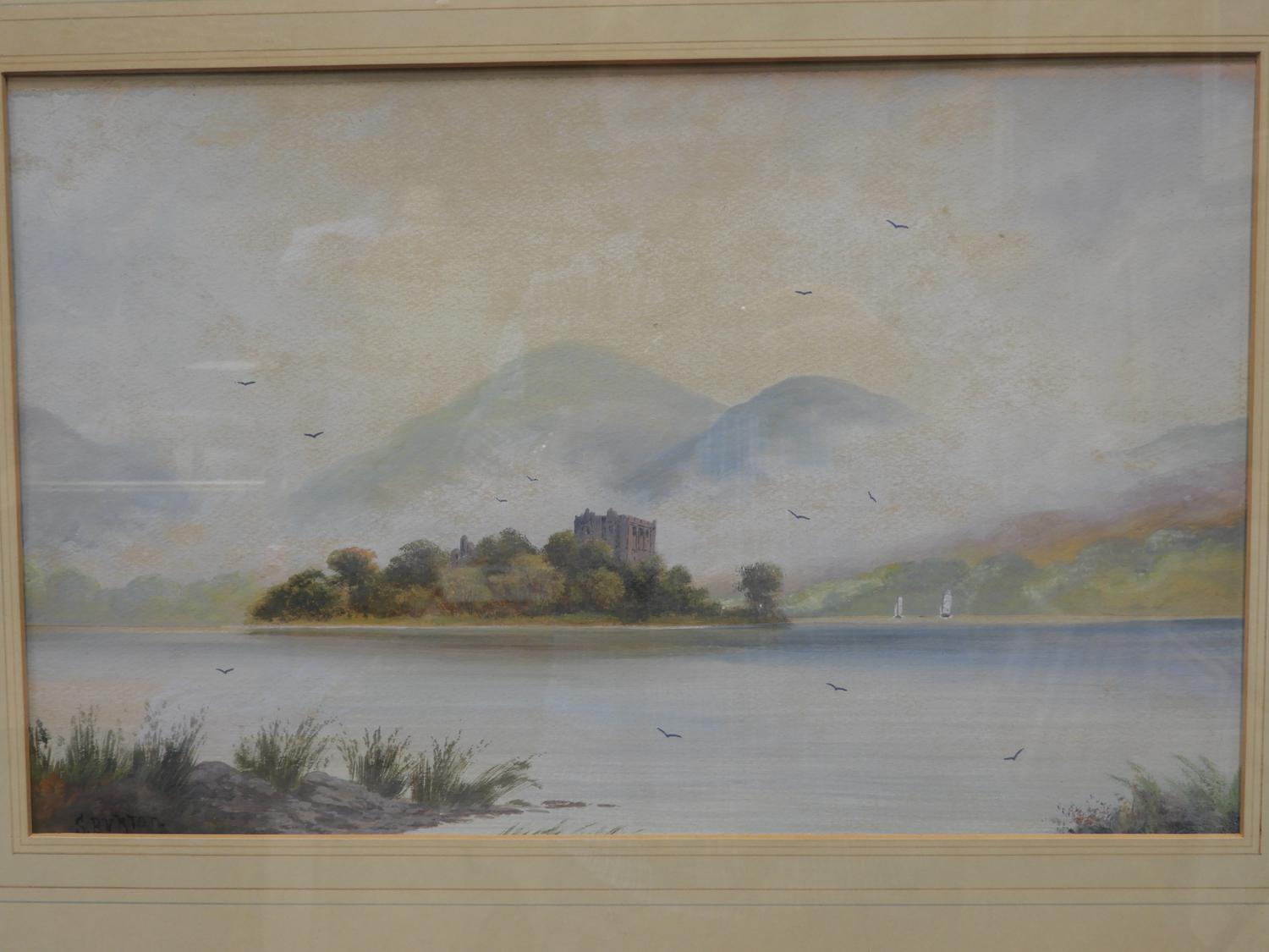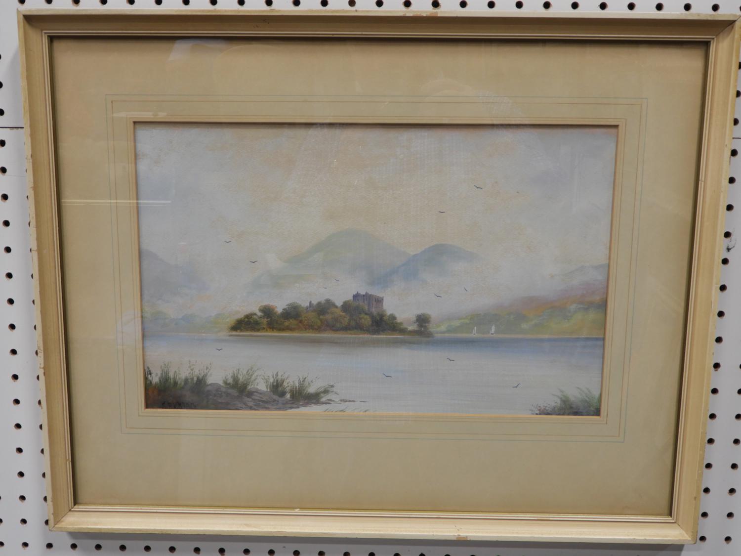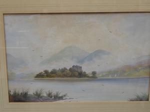 s. burton, watercolour, 17" x 11", "scottish highland loch and castle"