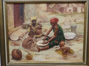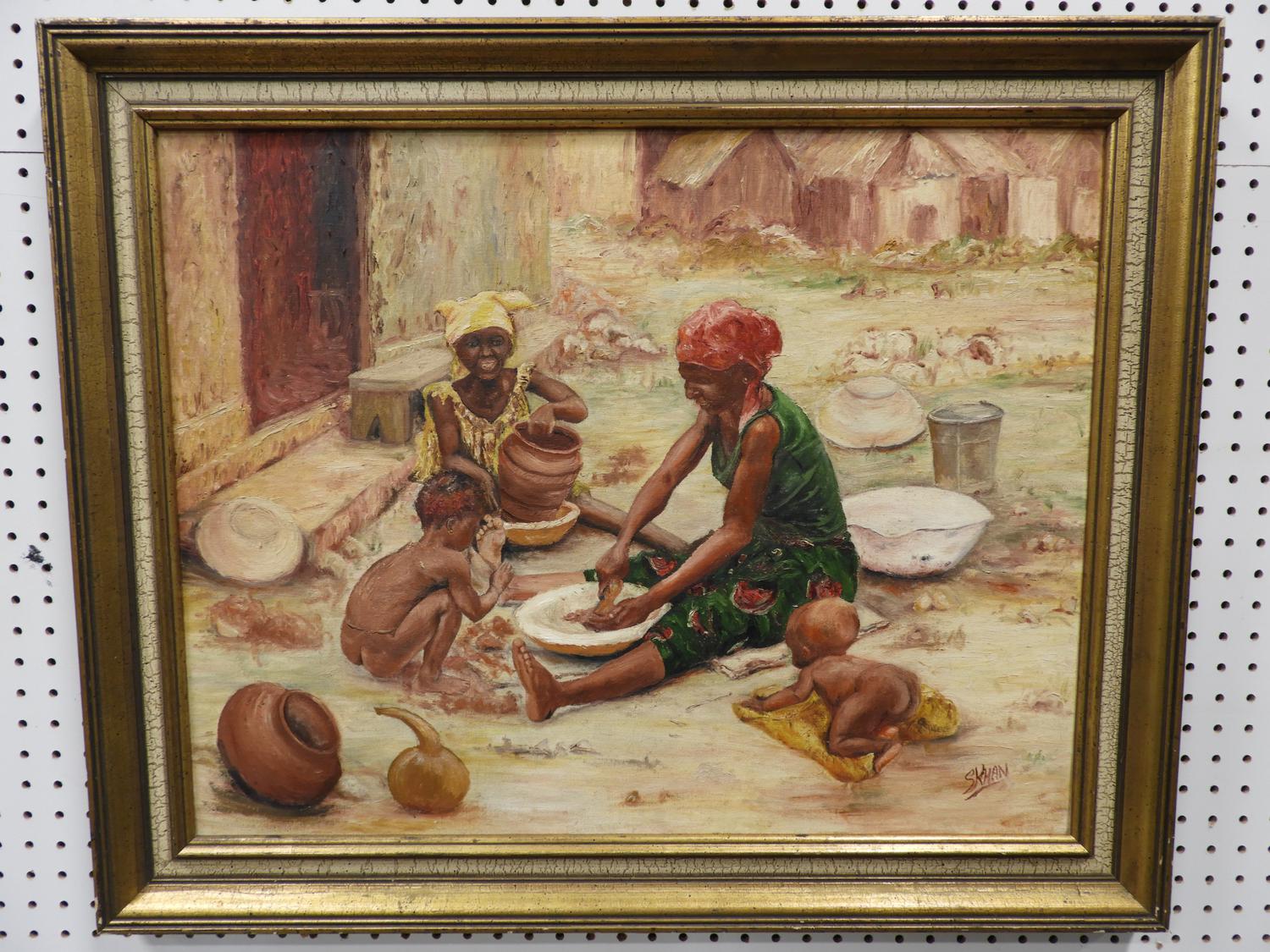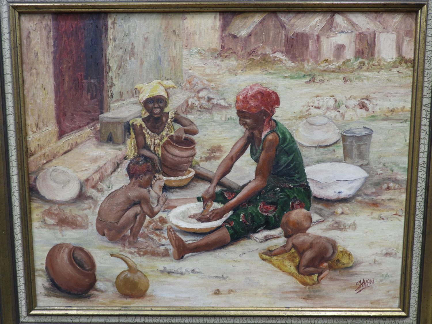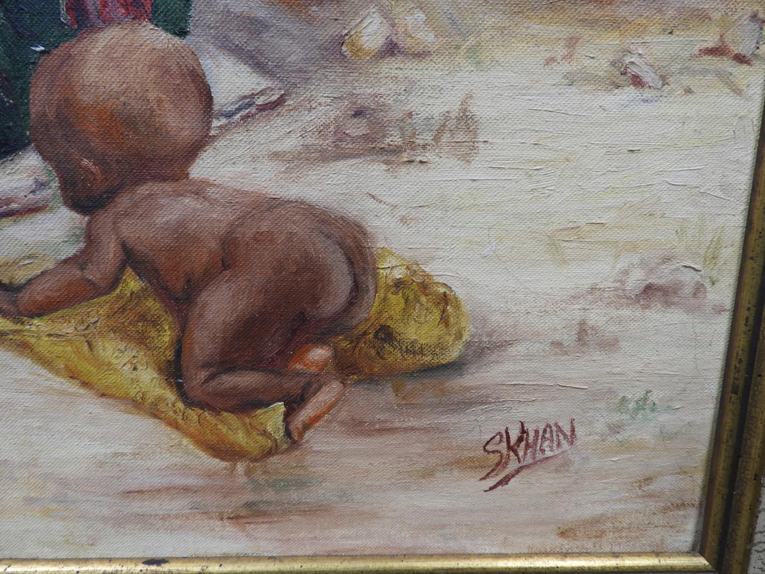s. khan, oil on board, 22" x 28", "south african"
