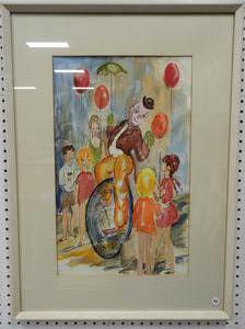 p. macfarlarne, watercolour, 21" x 13", "street entertainer"