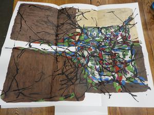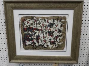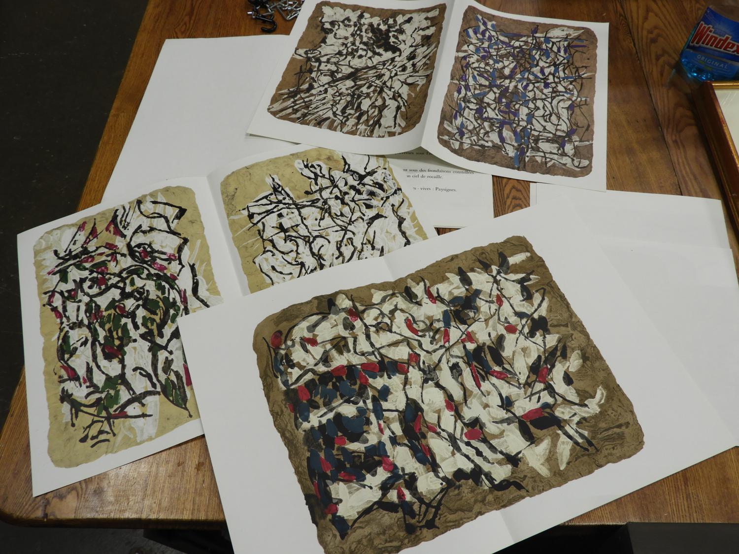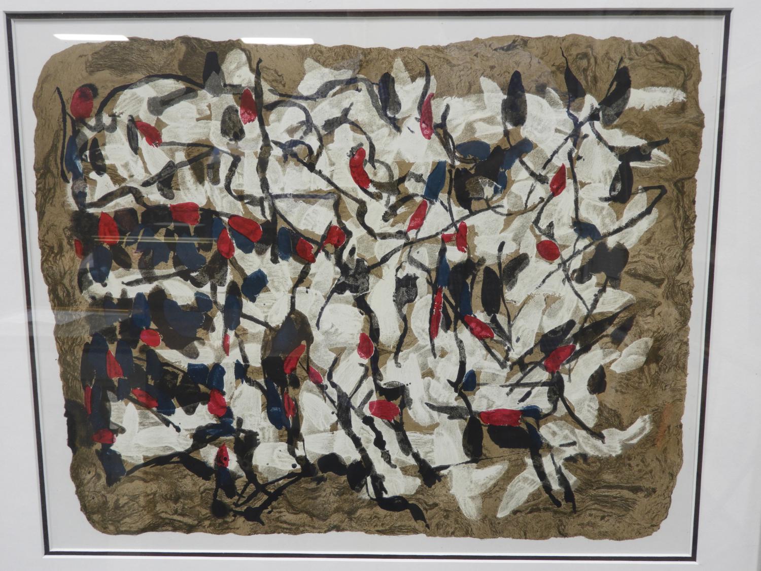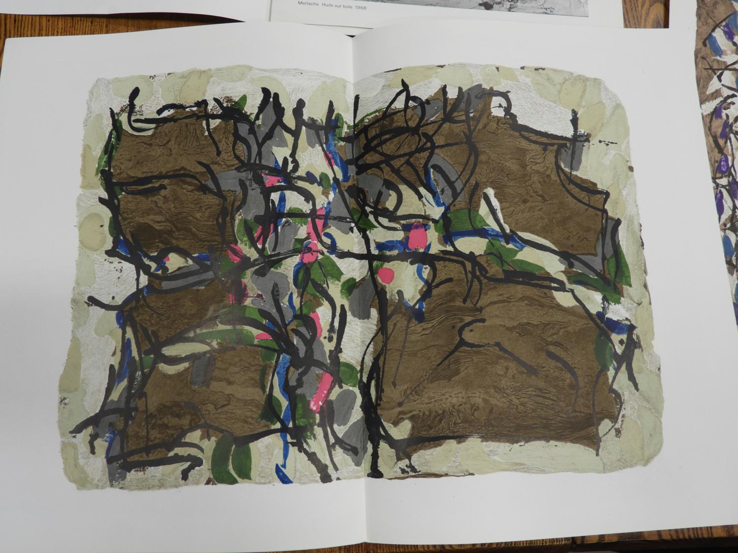 jean paul riopelle (1923-2002), framed colour reproduction print 13" x 16", "abstract" together with derriere le miroir folio of riopelle reproduction prints
