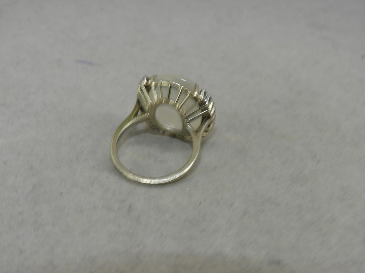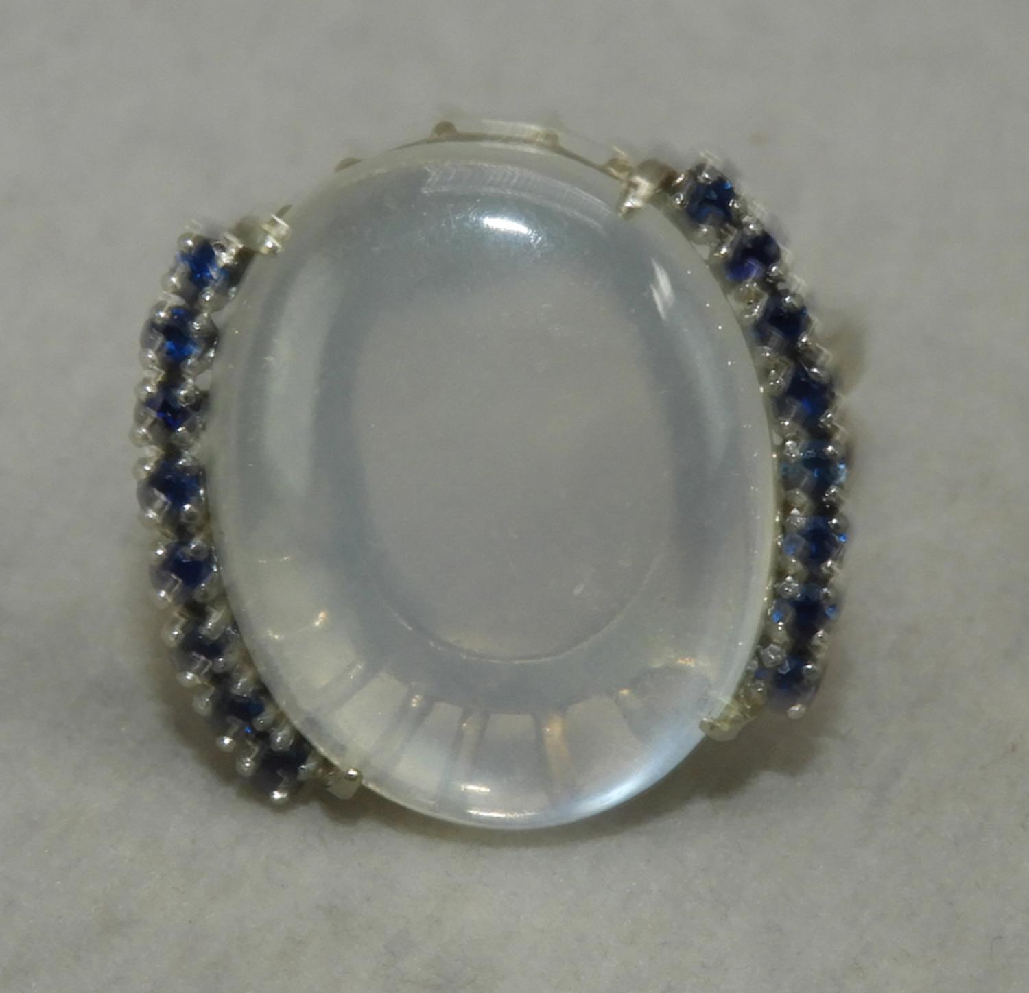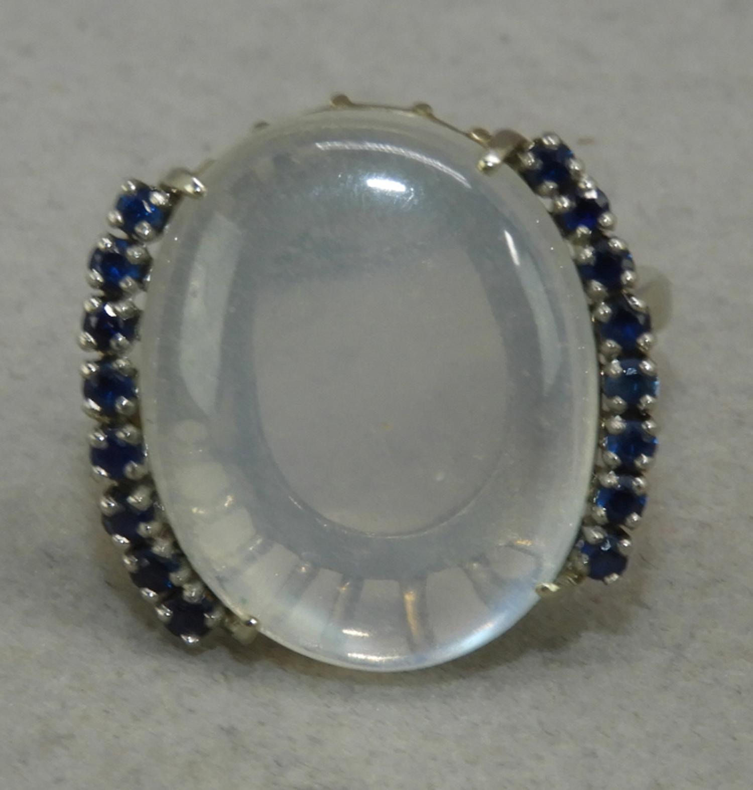 14k white gold sapphire and moonstone ring, size 8