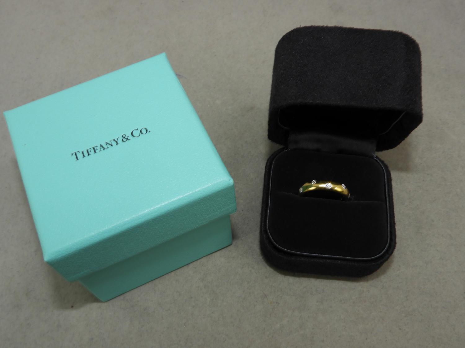 tiffany and co. 18k gold etoile ring, set with diamonds, size 4.5, with box