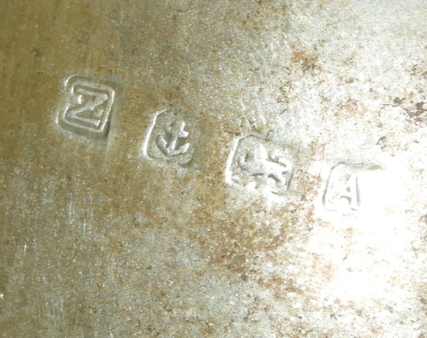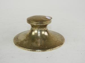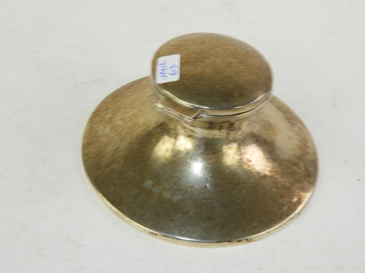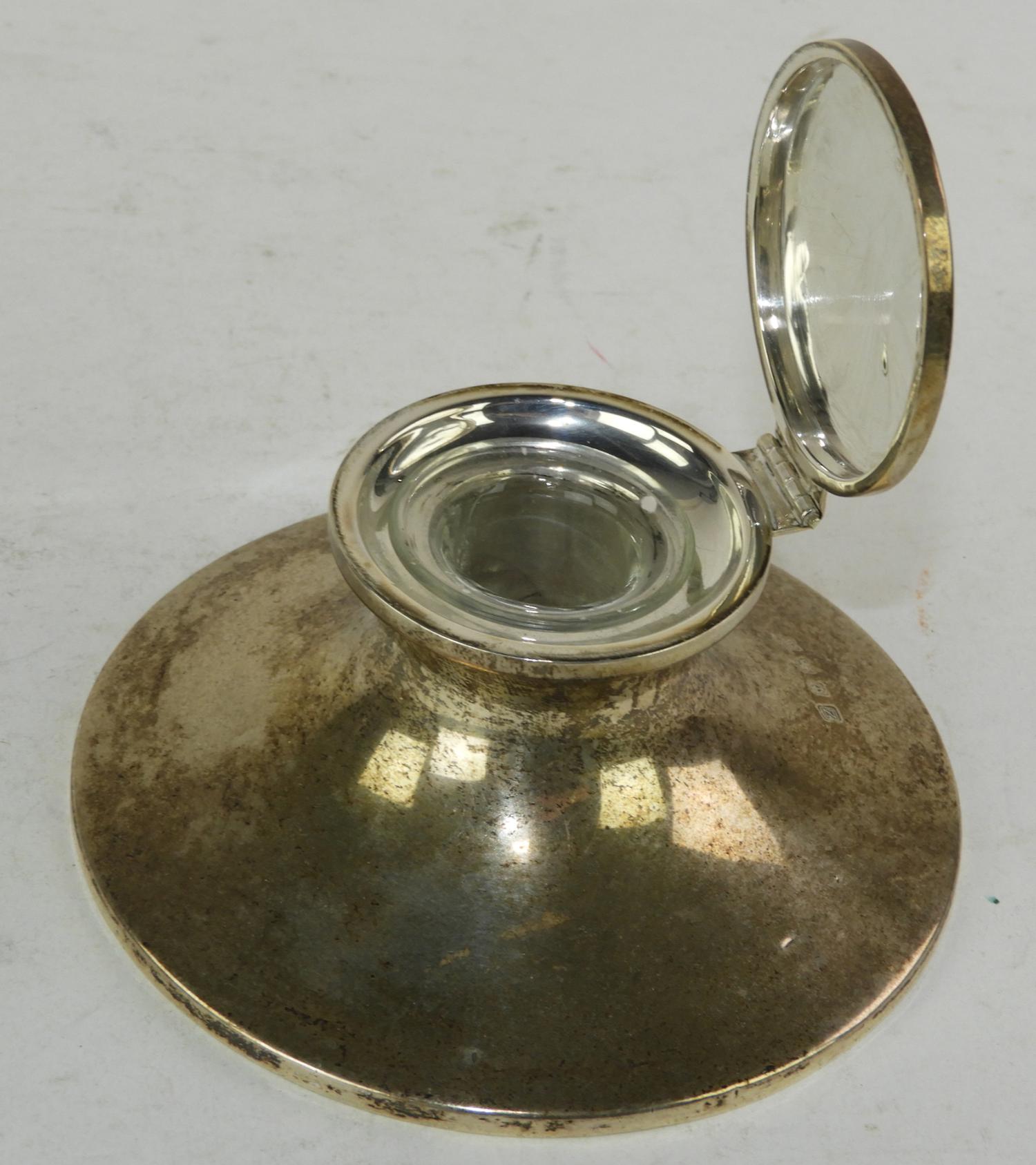 hallmarked sterling silver inkwell with glass insert, base dia. 4 1/2"