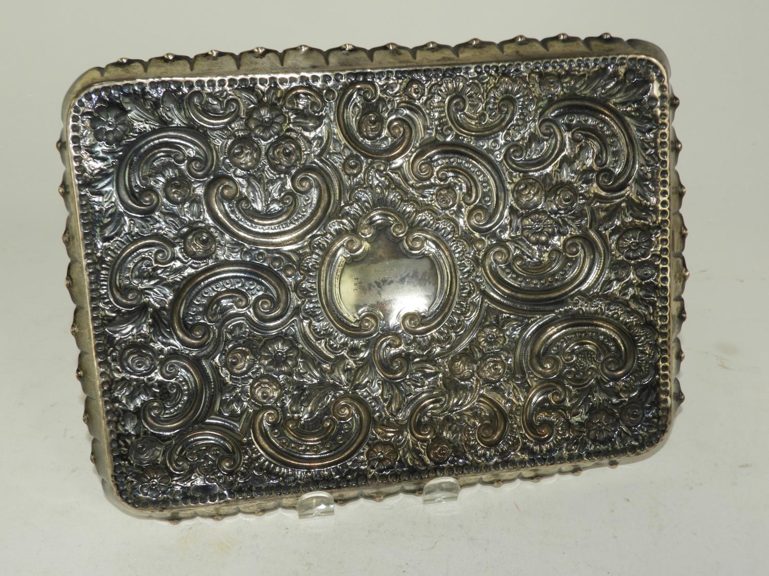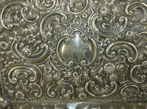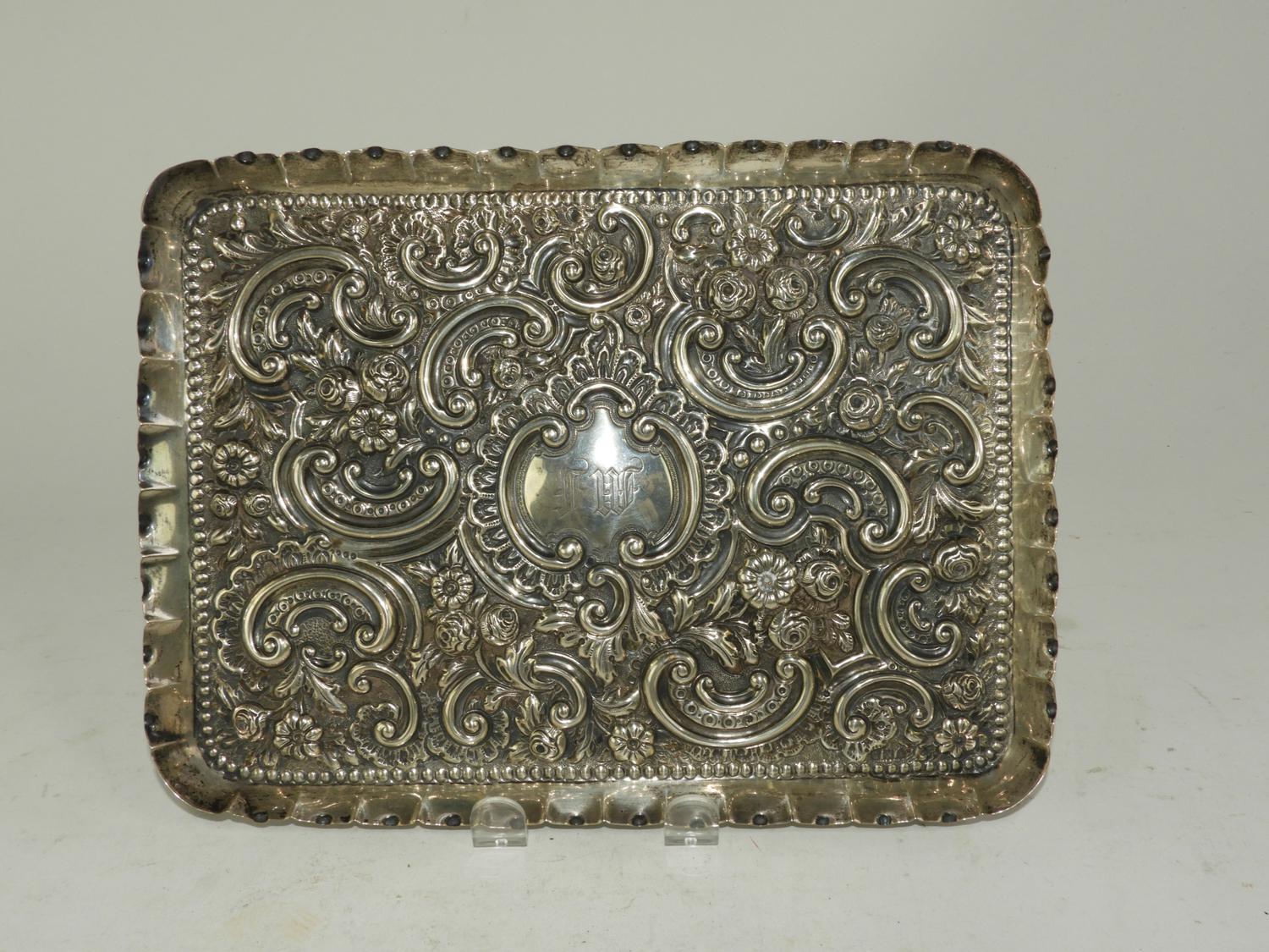 victorian hallmarked sterling silver serving tray, charles lias, london 1896, 11 1/2" x 8 1/2", w/a 504 grams