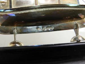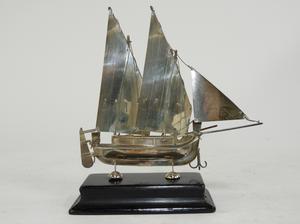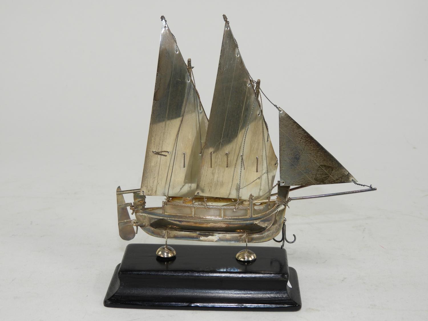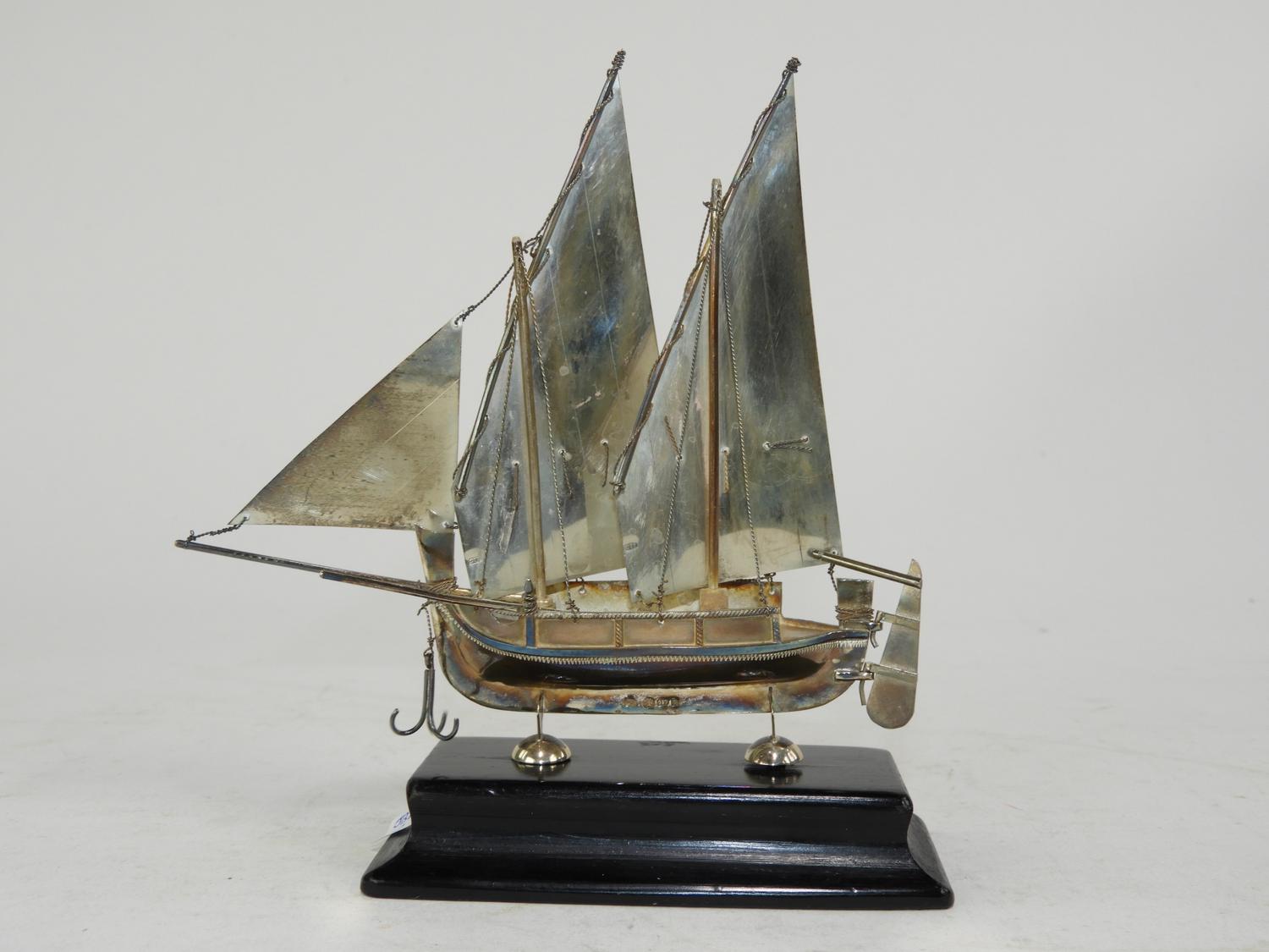 hallmarked silver miniature tall ship on stand, ht 6 1/8"