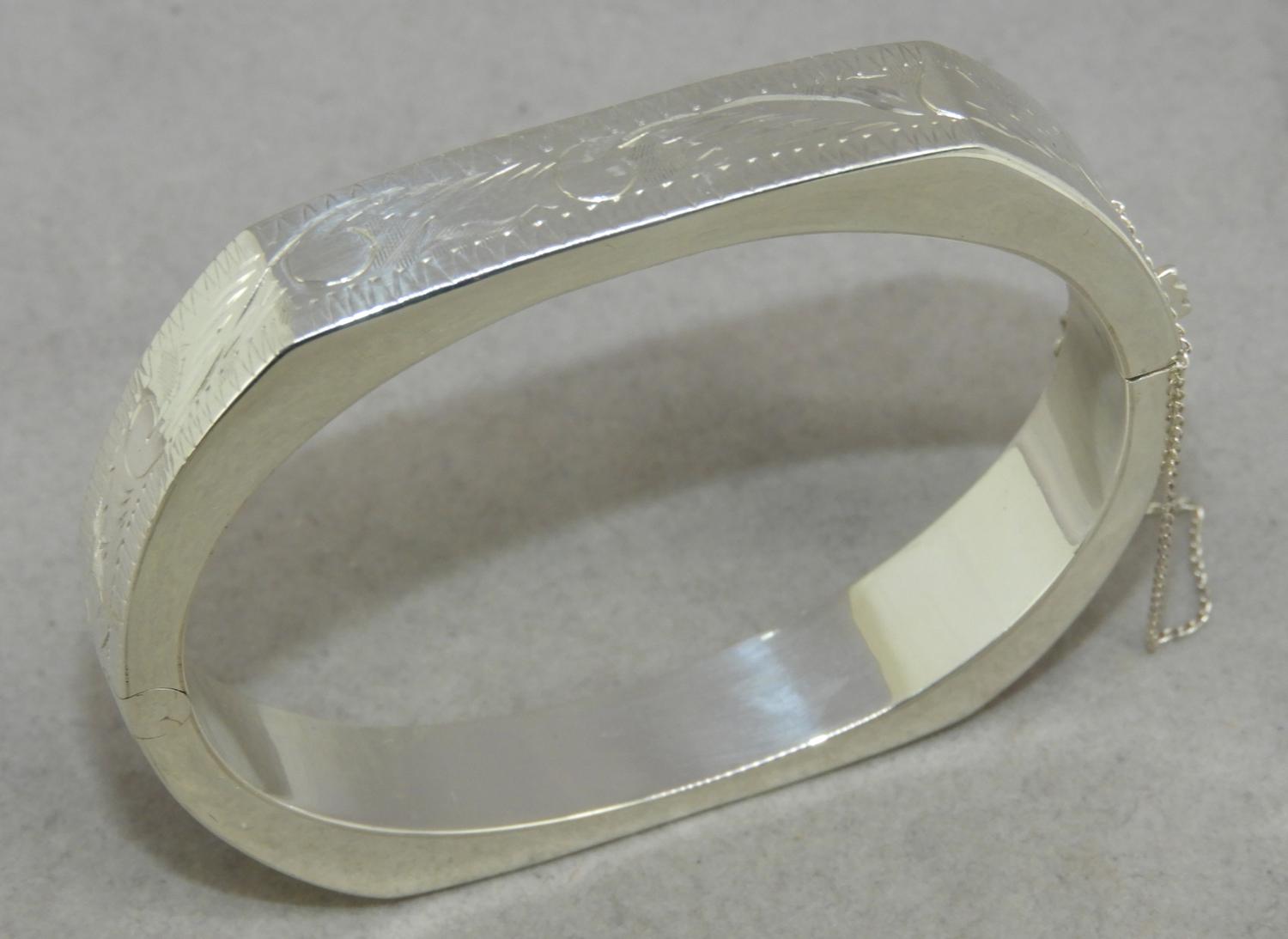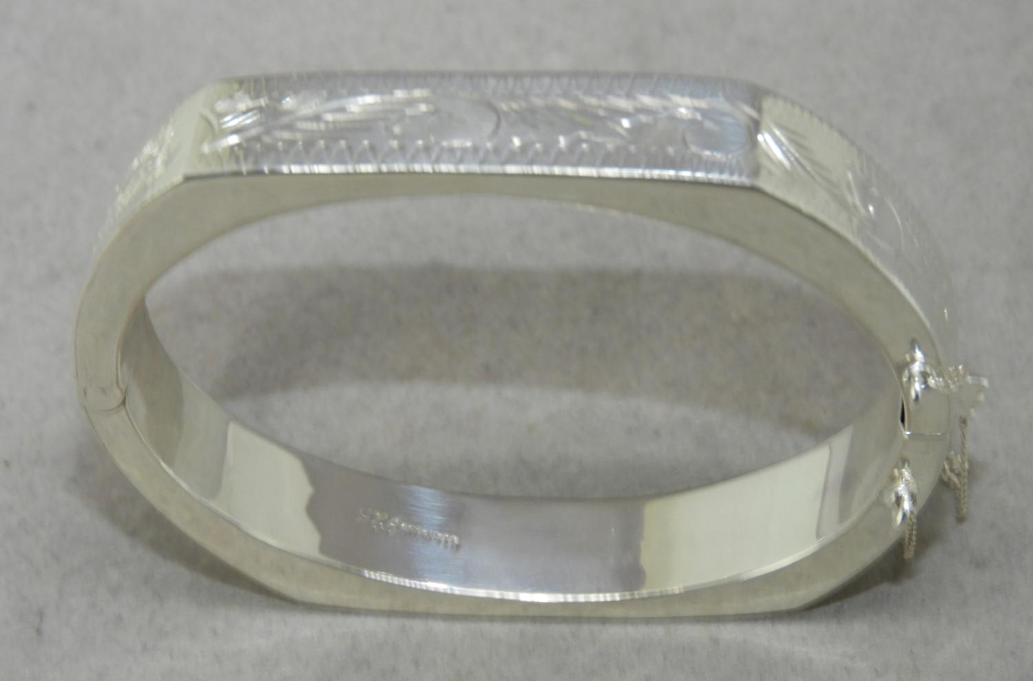 etched sterling silver bangle, w/a 19.7grams