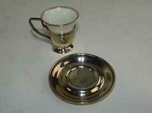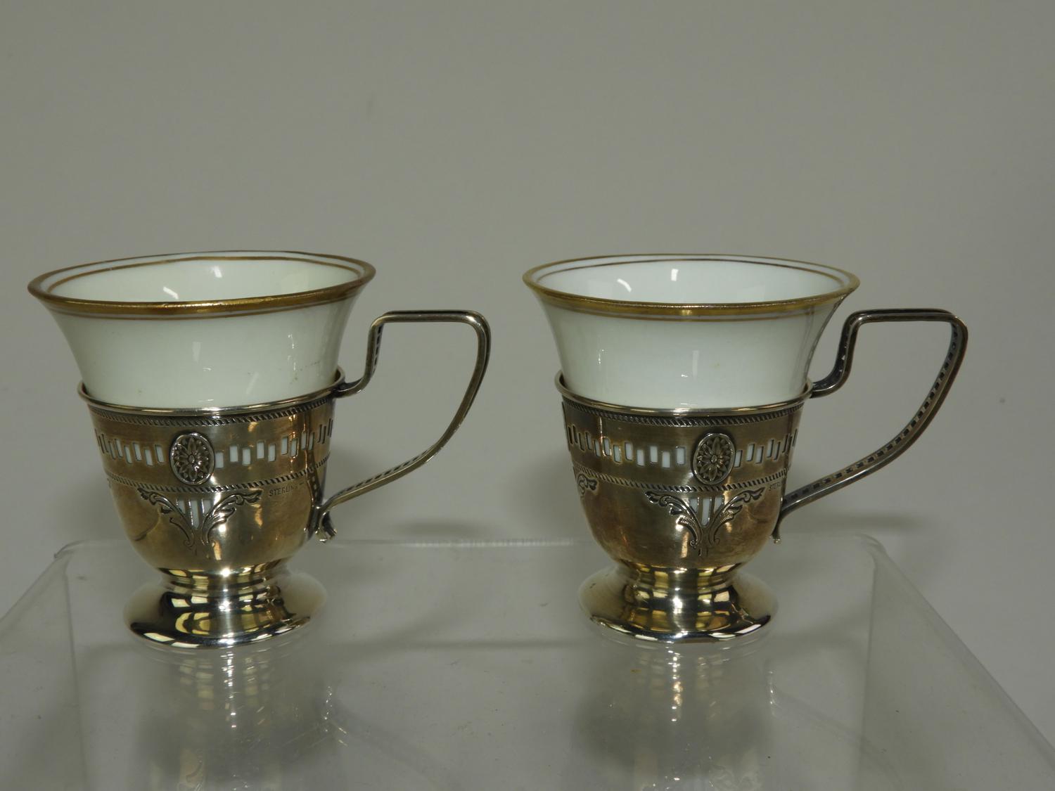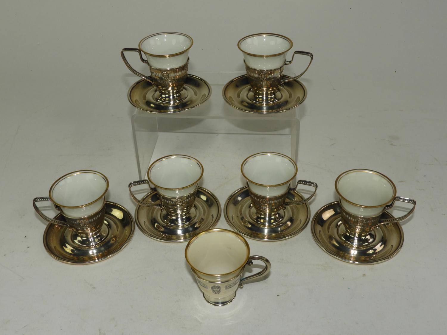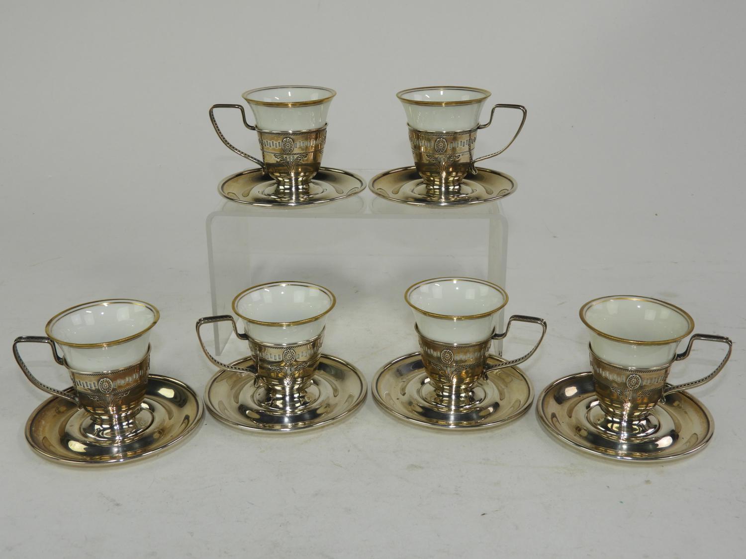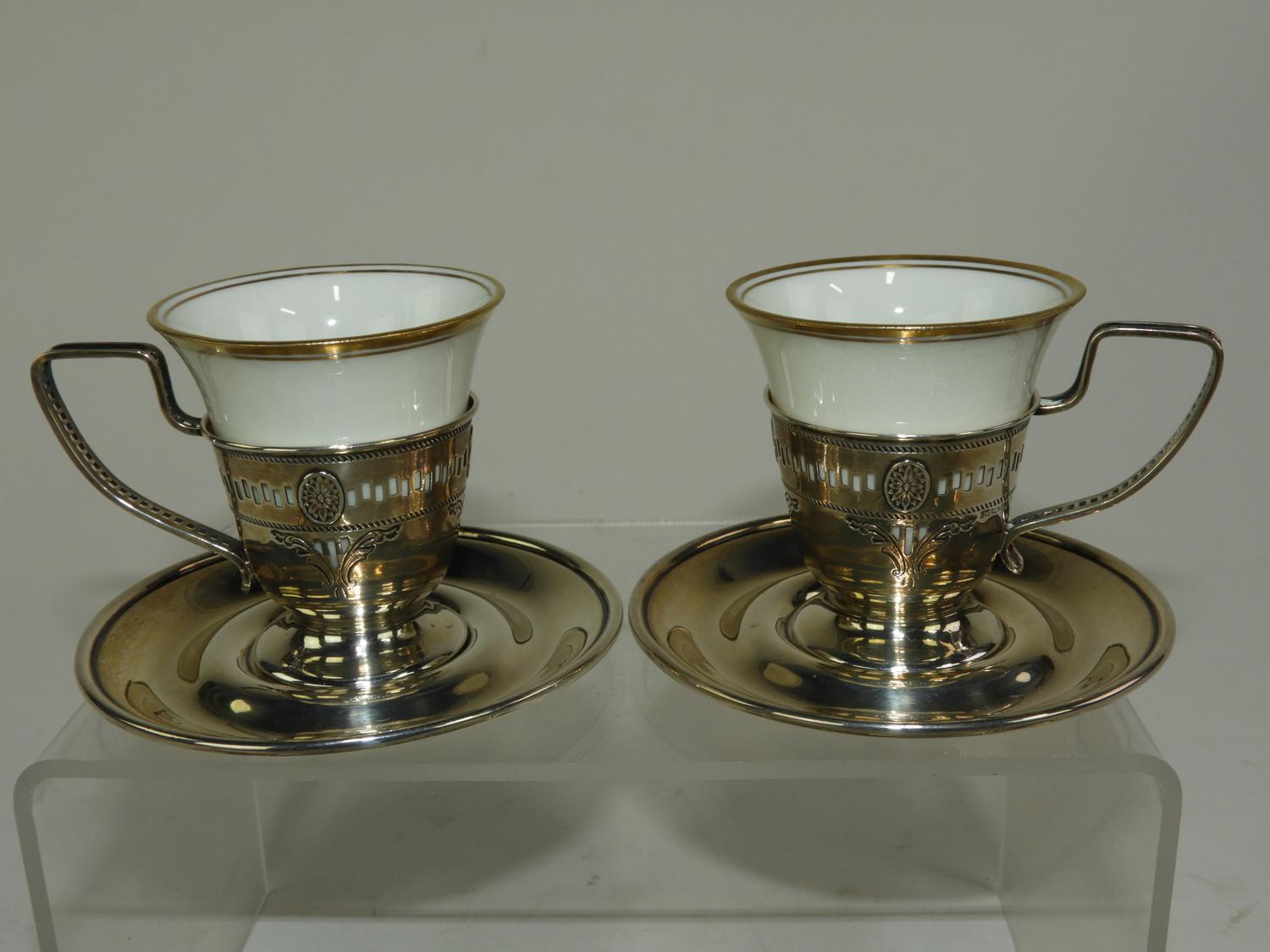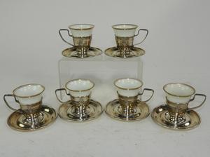 sterling silver demi tasse cups and saucers with porcelain liners with an extra simular cup, 231 grams