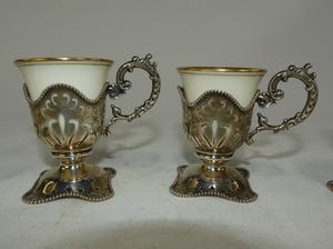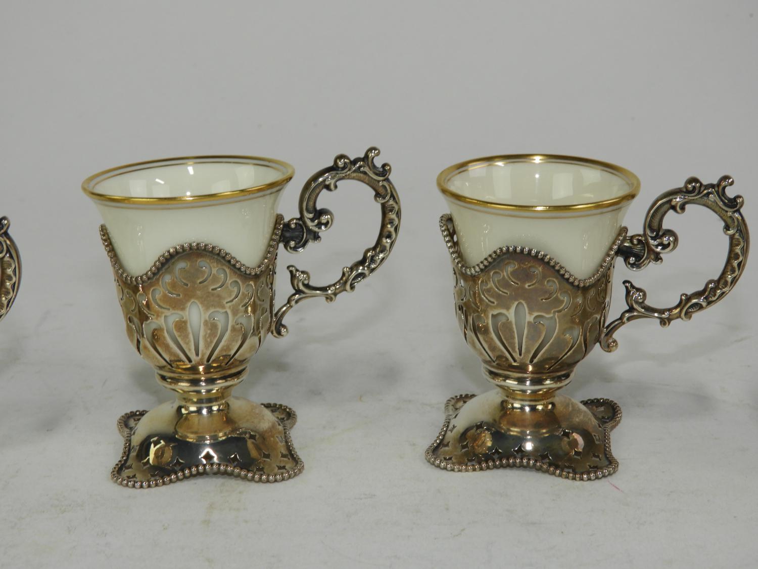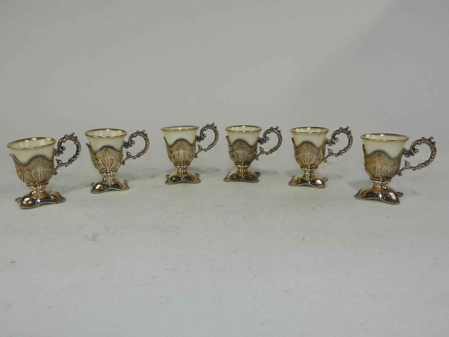 set of six sterling silver demi-tasse cups with lennox liners, weighable silver 292 grams