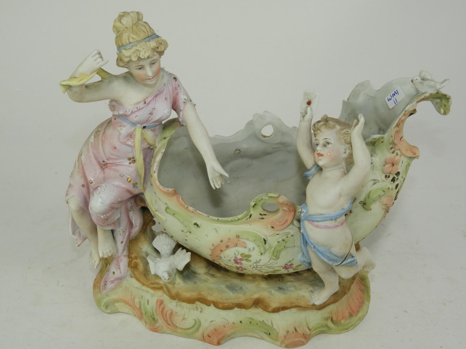 continental porcelain figural centerpiece, 10" x 11" x 4 1/2"