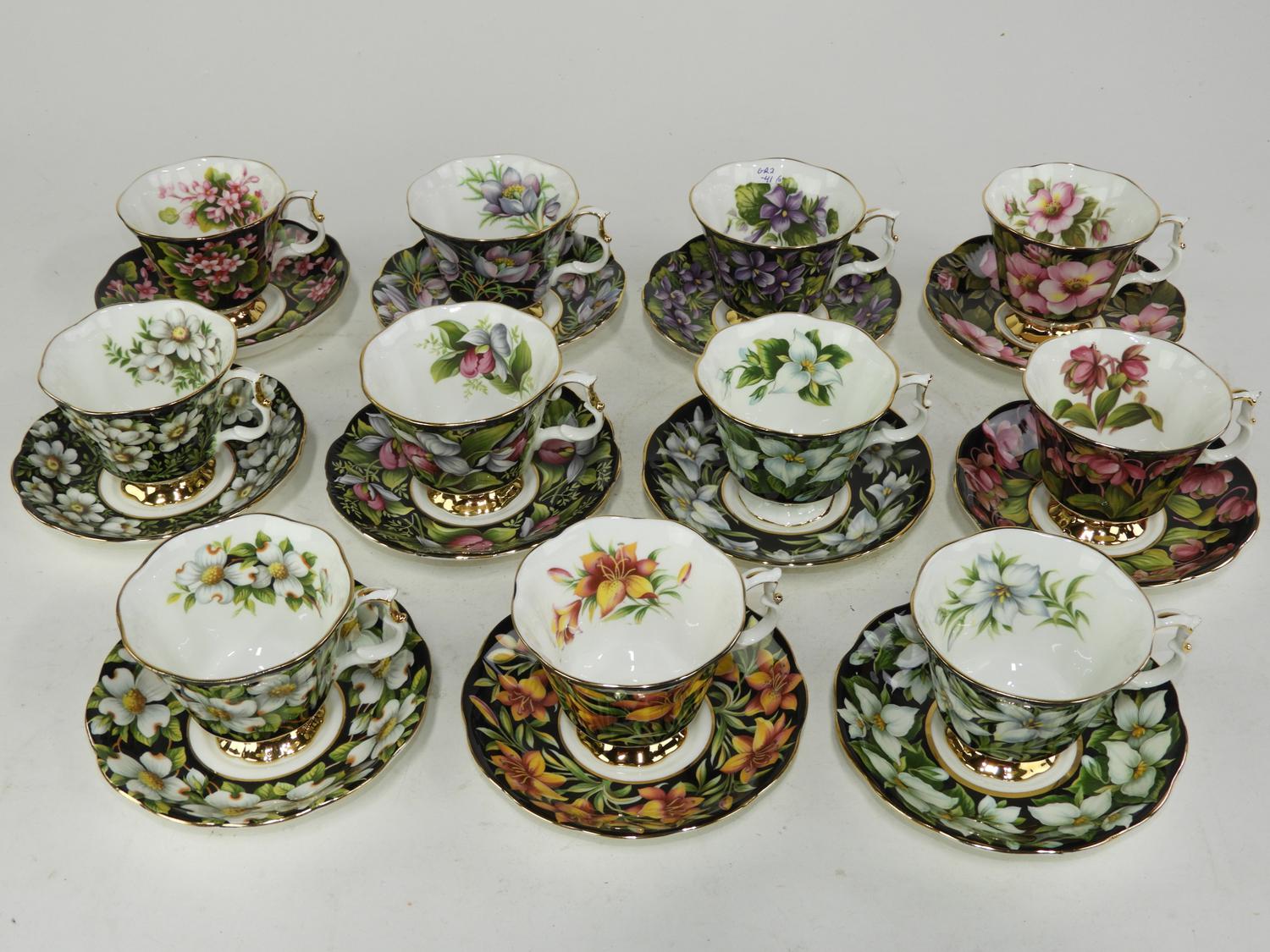 set of 12 royal albert "provincial flowers" tea cups and saucers