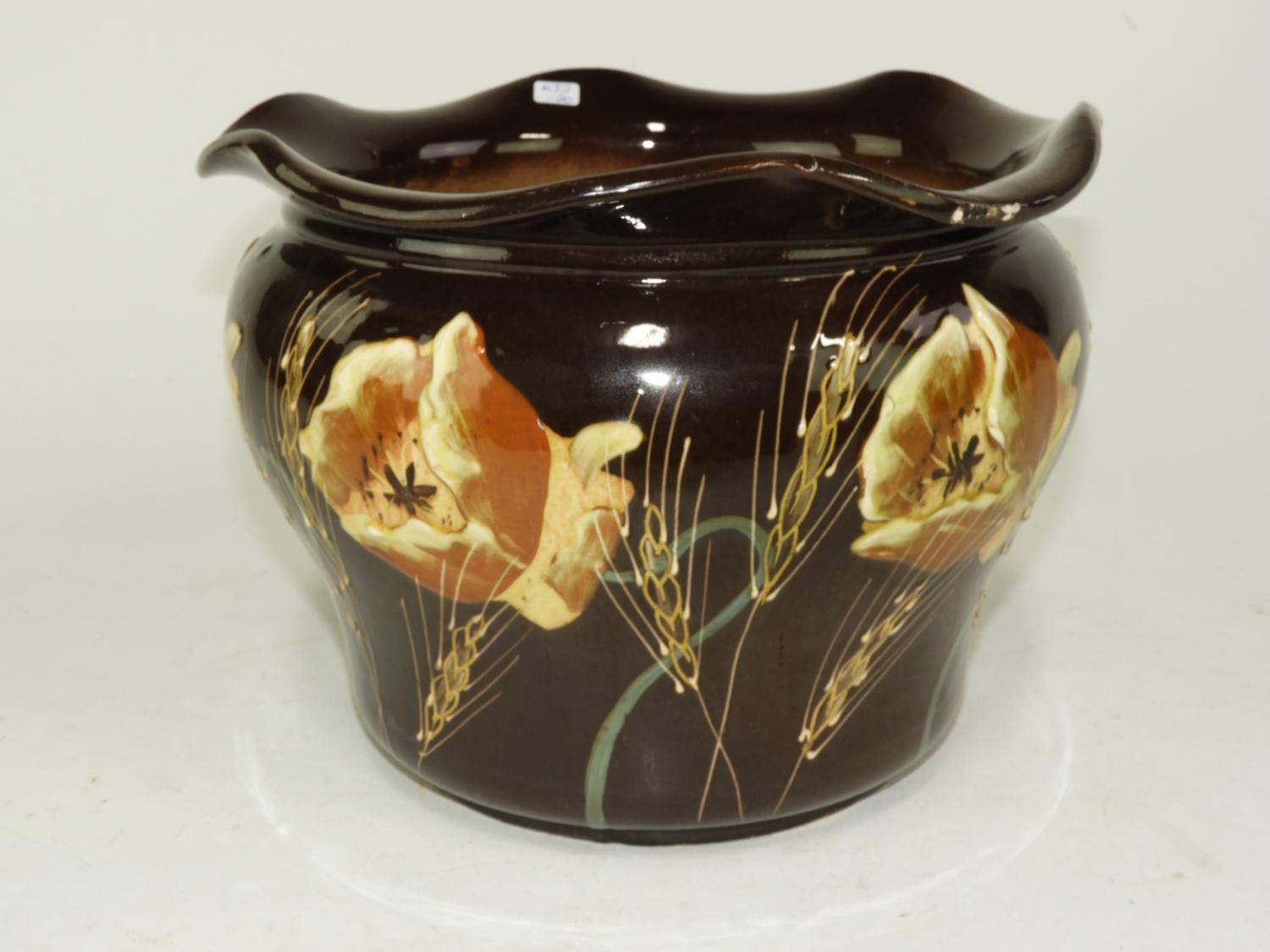 dresden glazed earthenware jardiniere, 8 1/4" x 10 1/2"