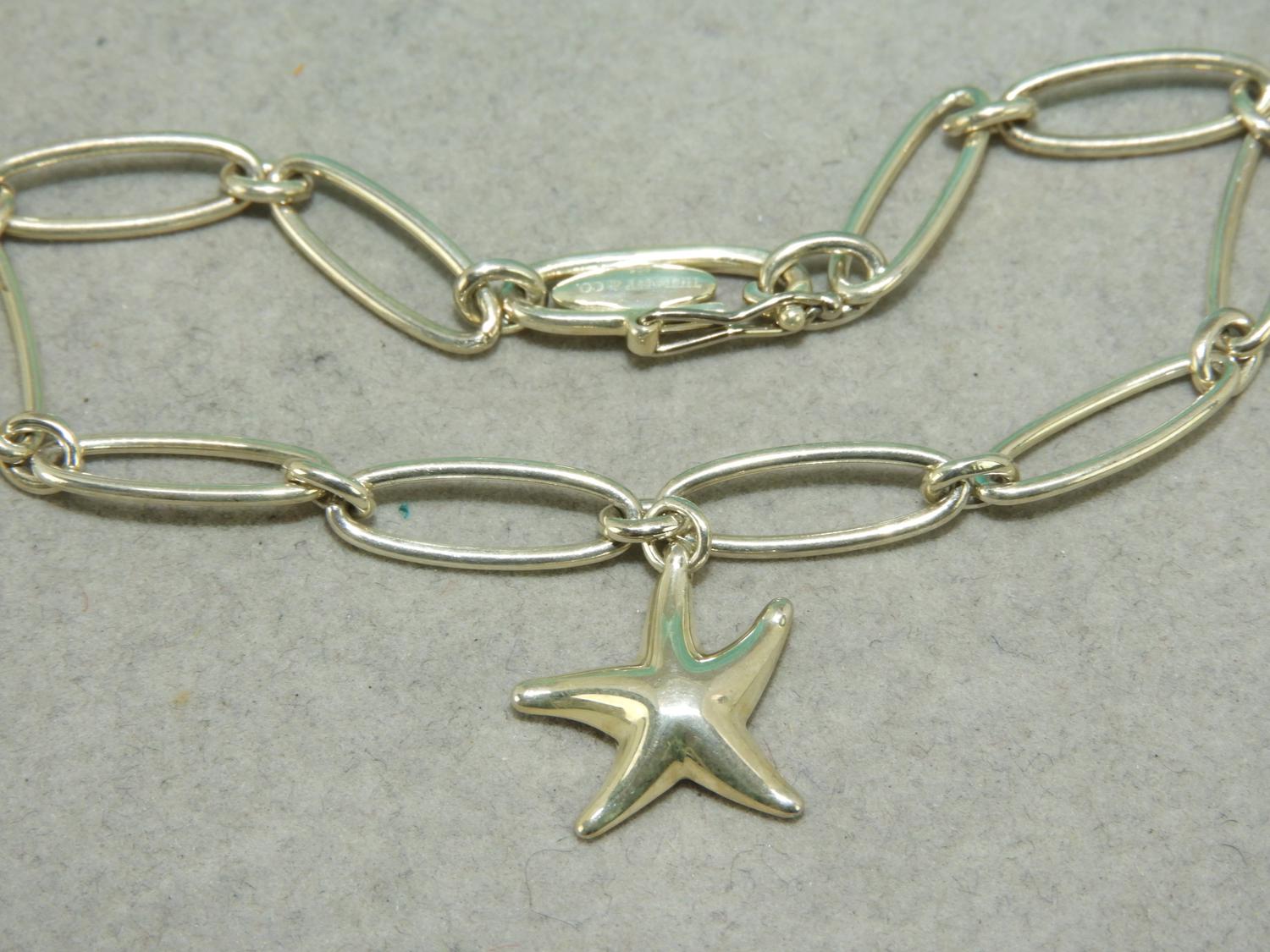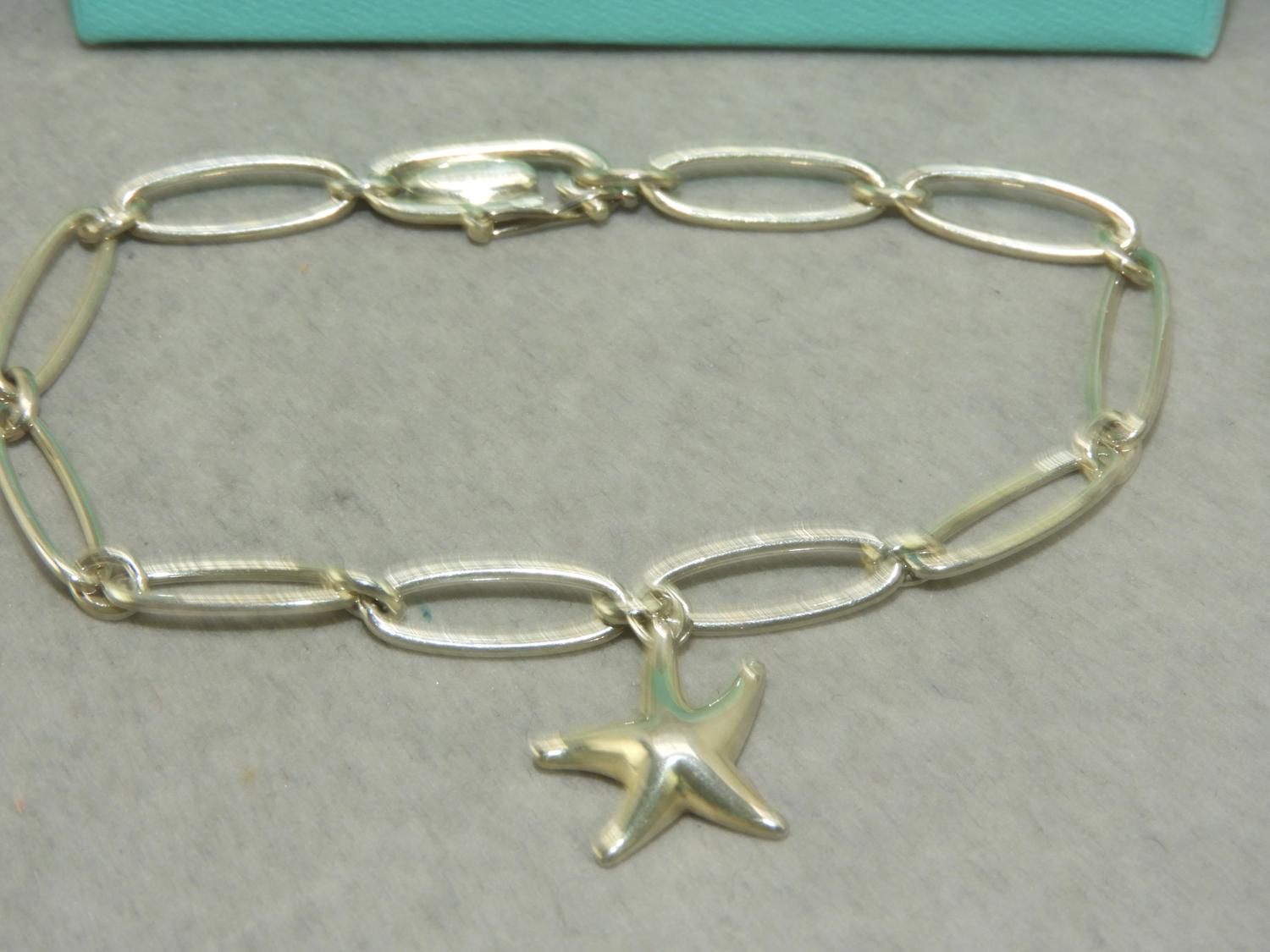tiffany and co. elsa peretti sterling silver starfish charm bracelet, with box