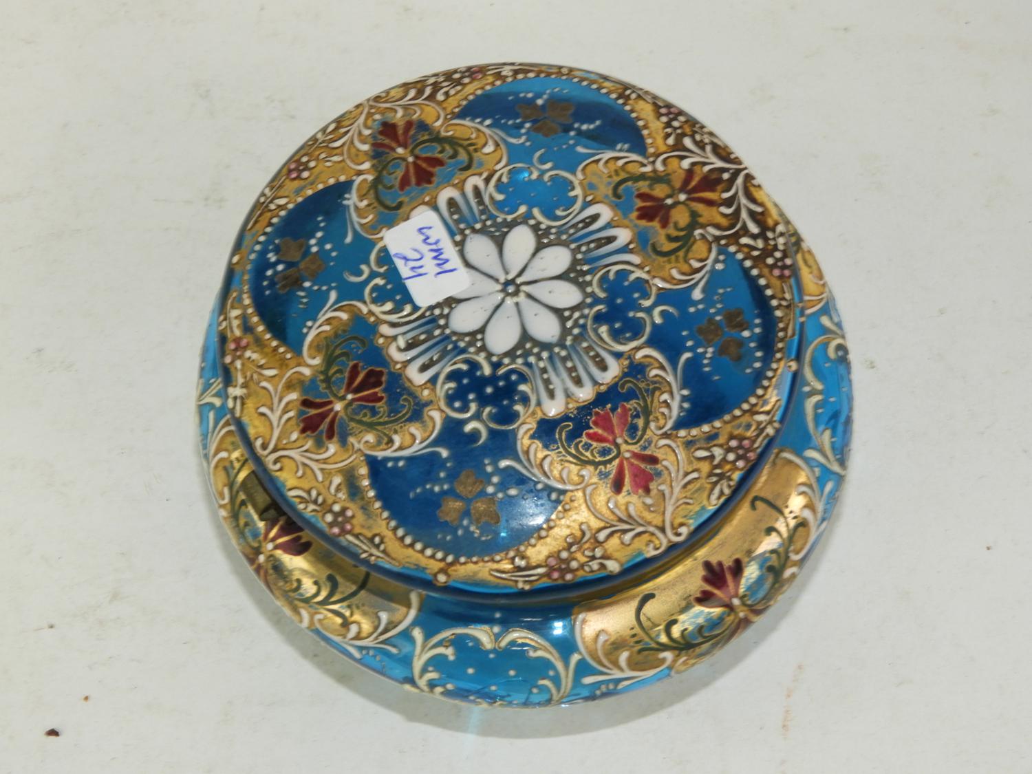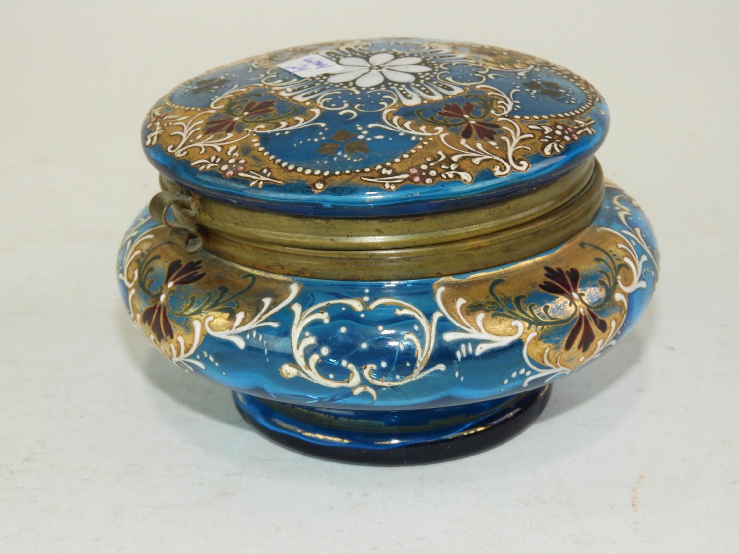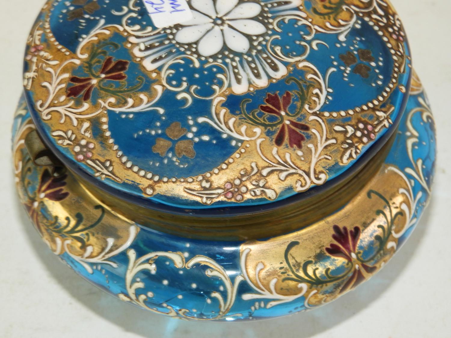 bohemian blue glass dresser box, 3" x 4 1/2"