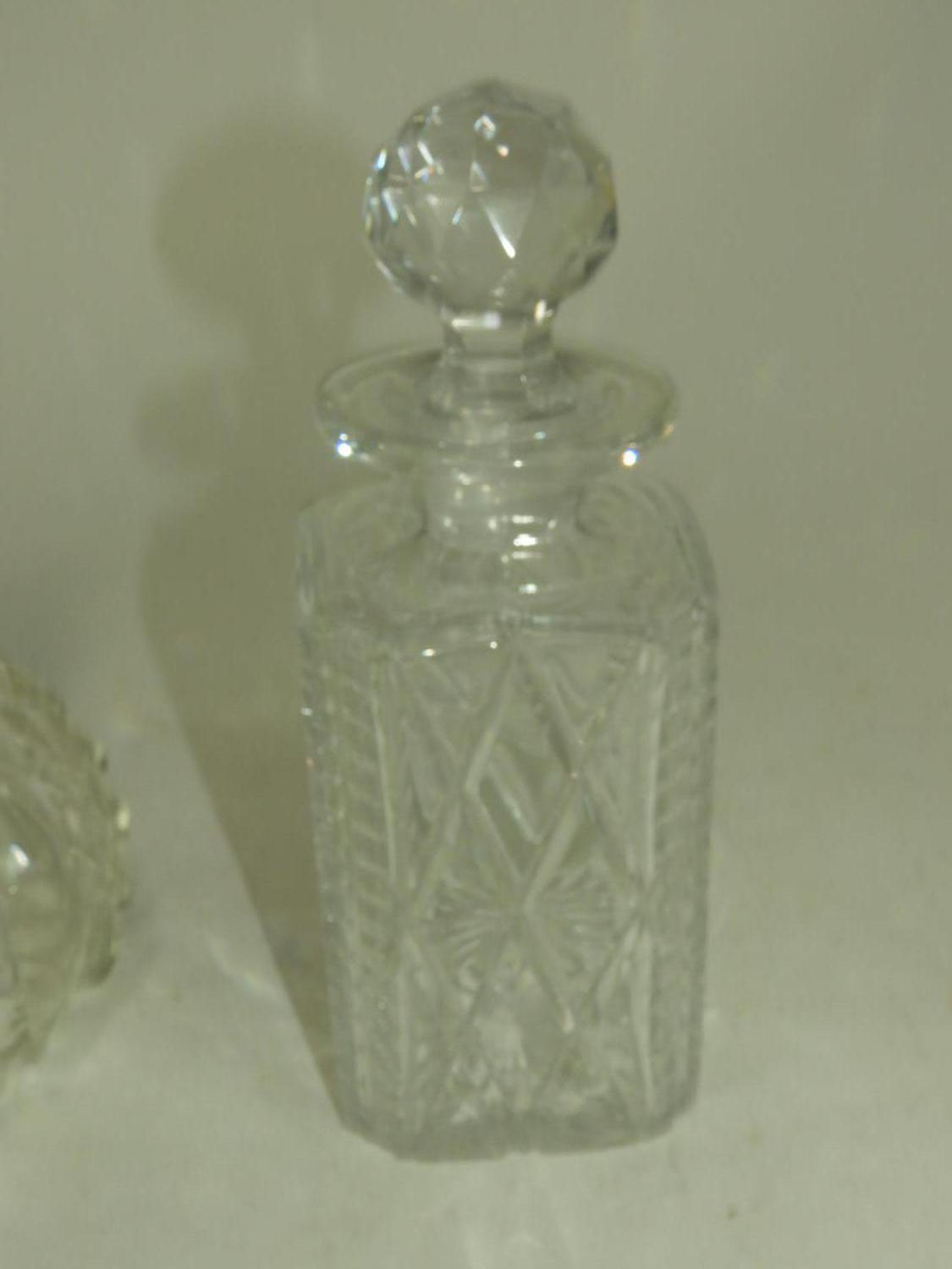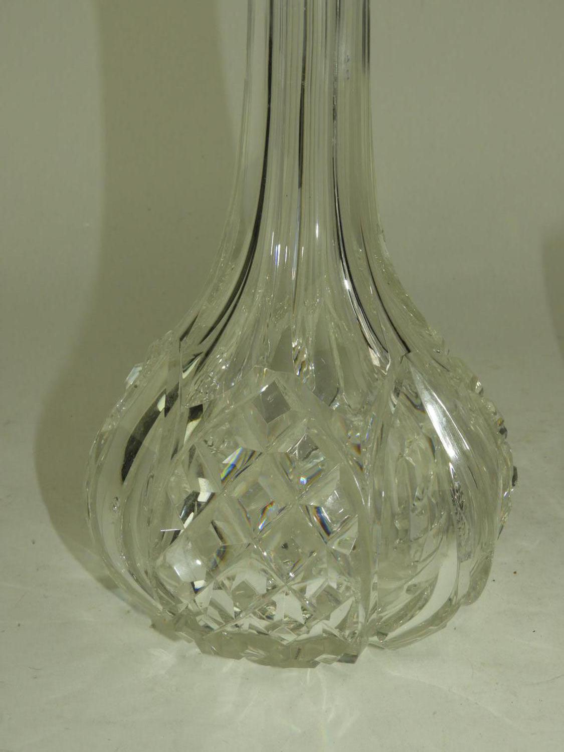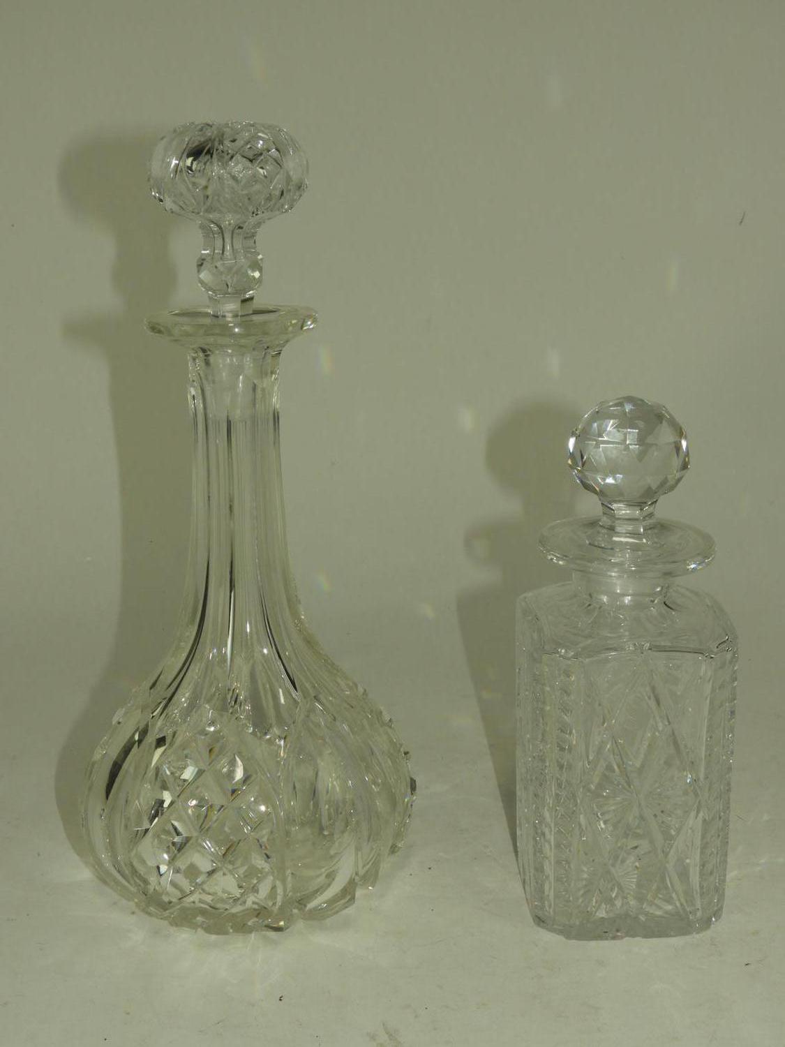 two cut crystal decanters, ht 13 1/2" and smaller