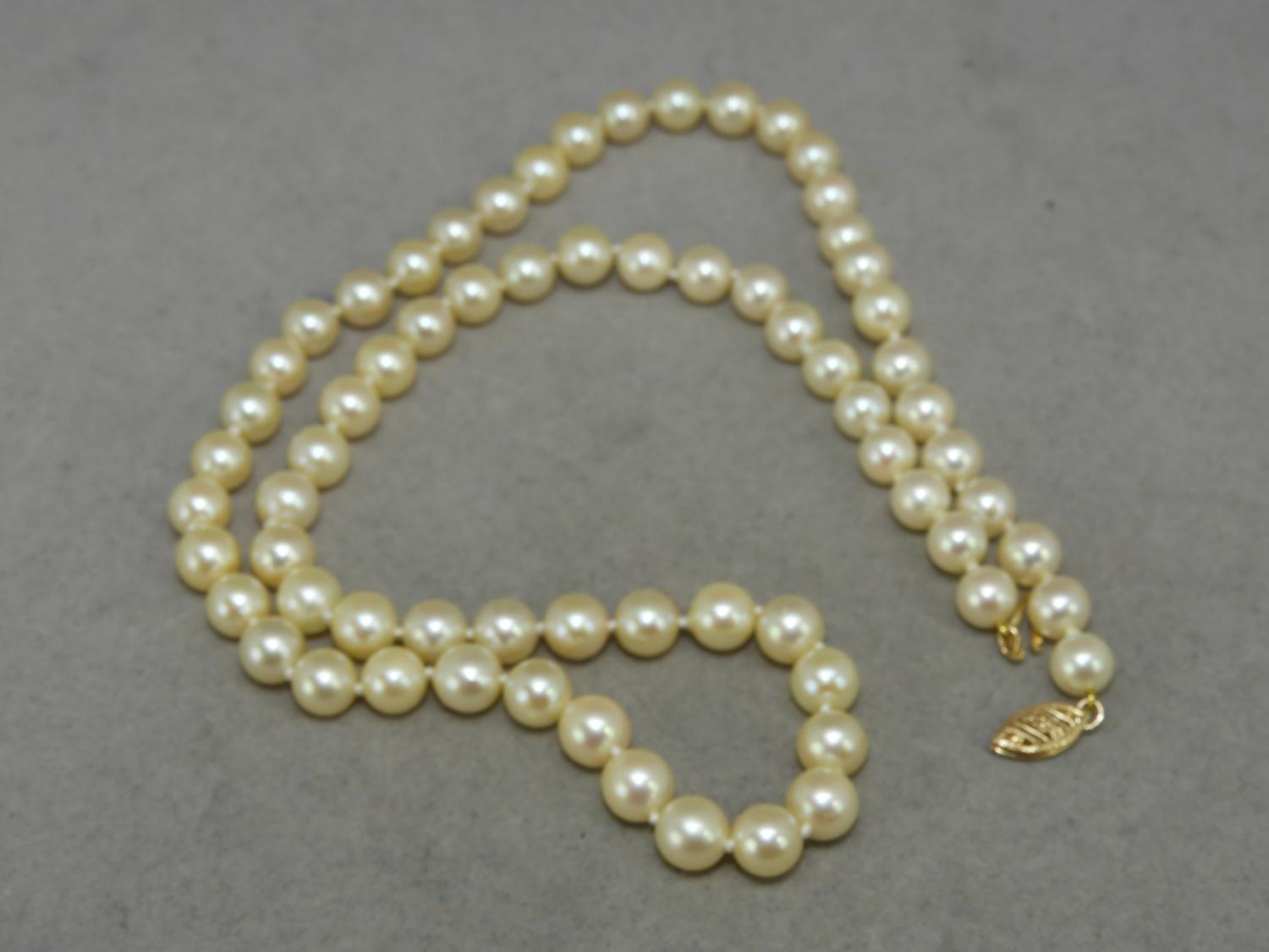 pearl necklace, 6.5-7mm, with 14k gold clasp, length 21"