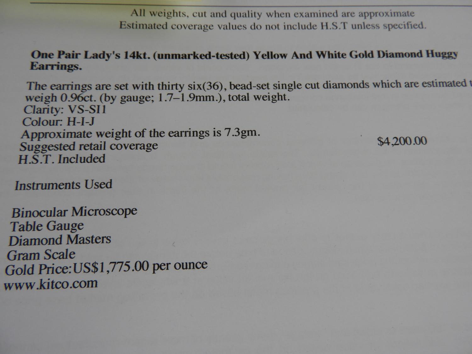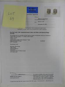 14k custom made diamond earrings, .96cts, with appraisal