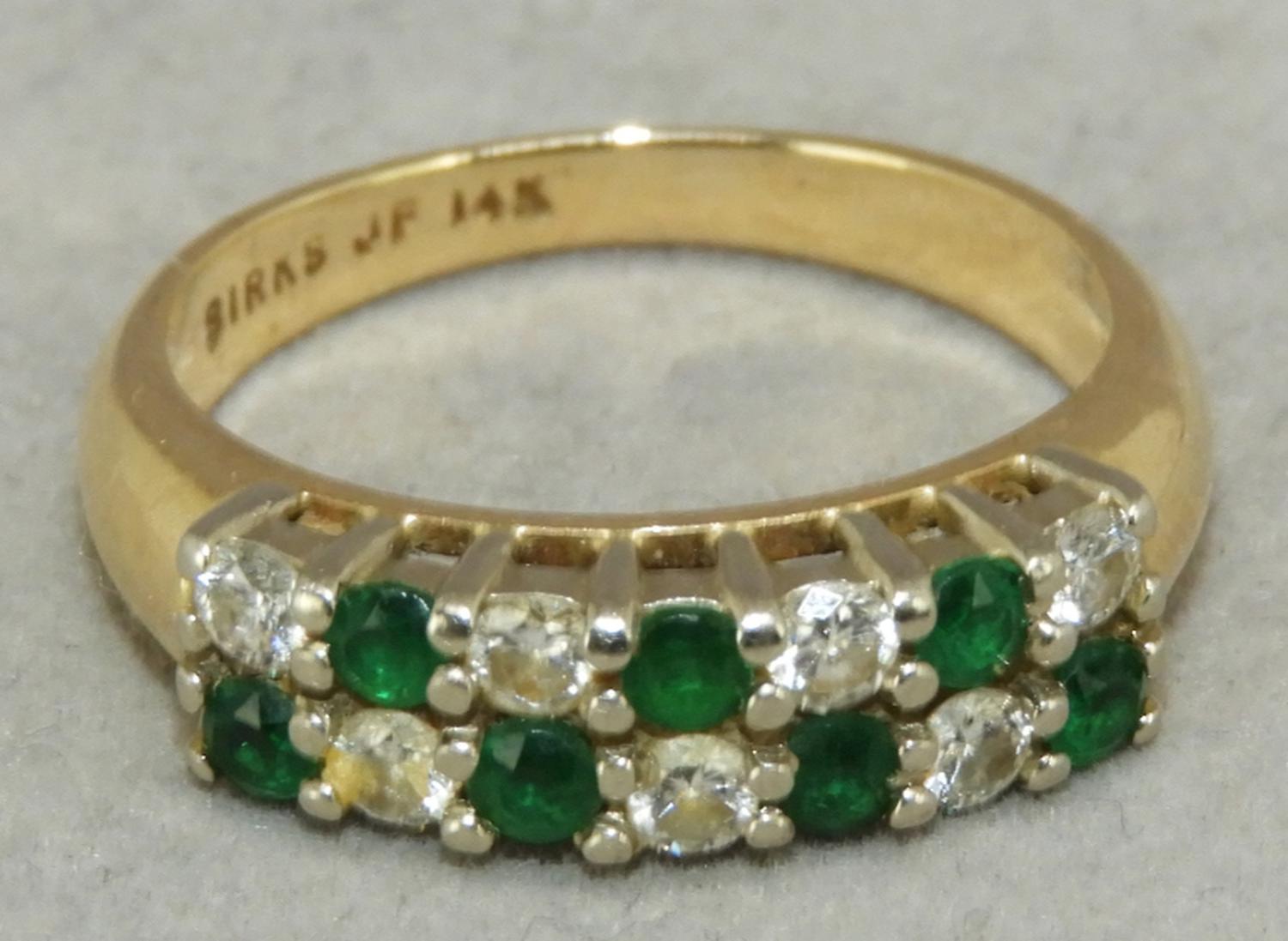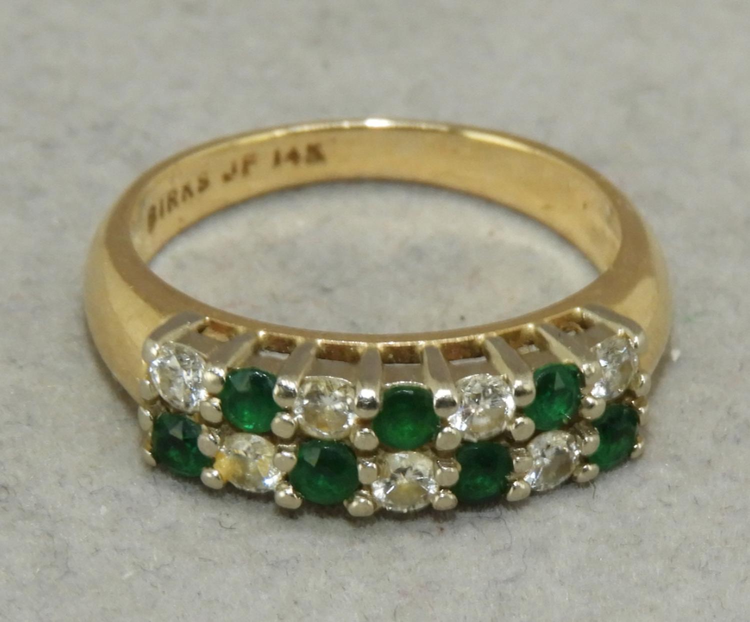 birks 14k yellow gold emerald and diamond ring, size 5 1/2"