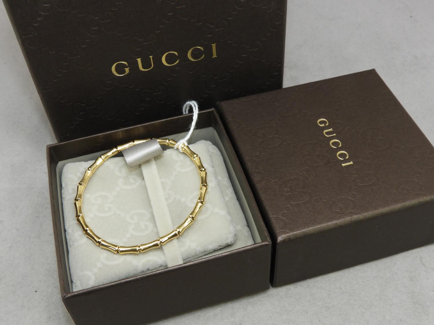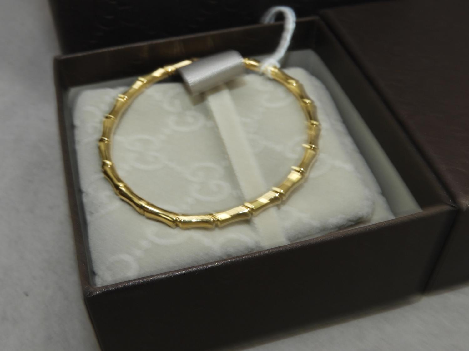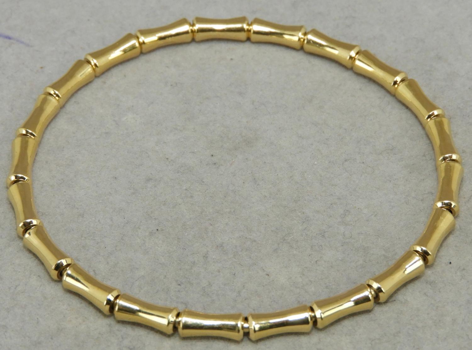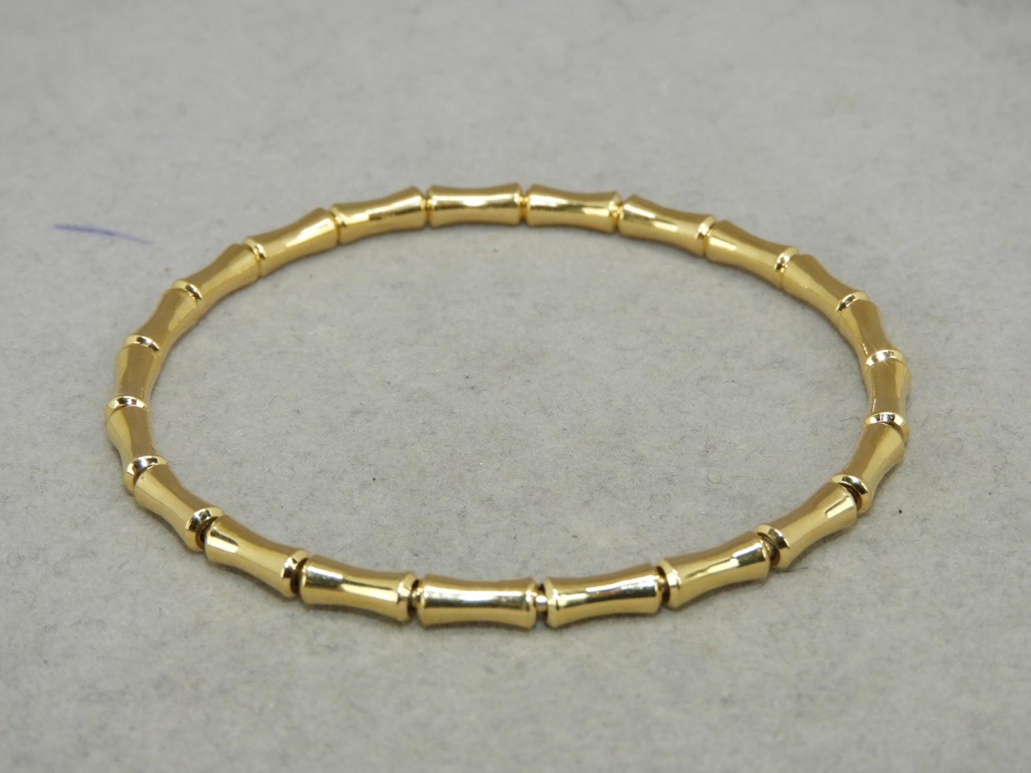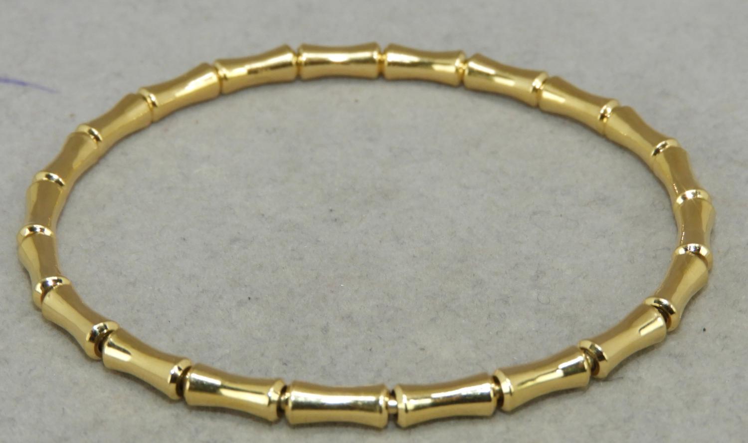 gucci 18k yellow gold stretch bamboo bracelet, size 17, 8.9grams, with box