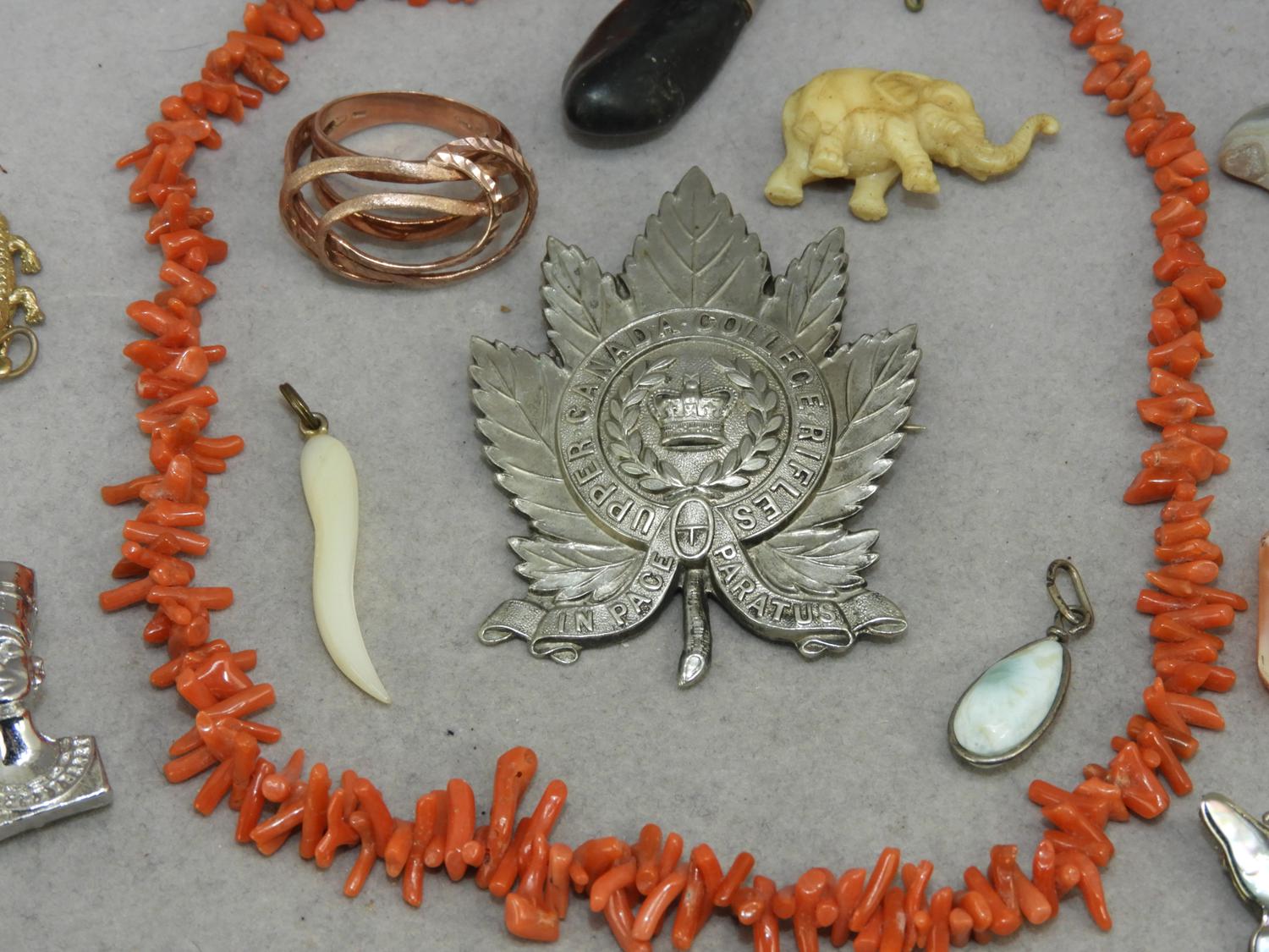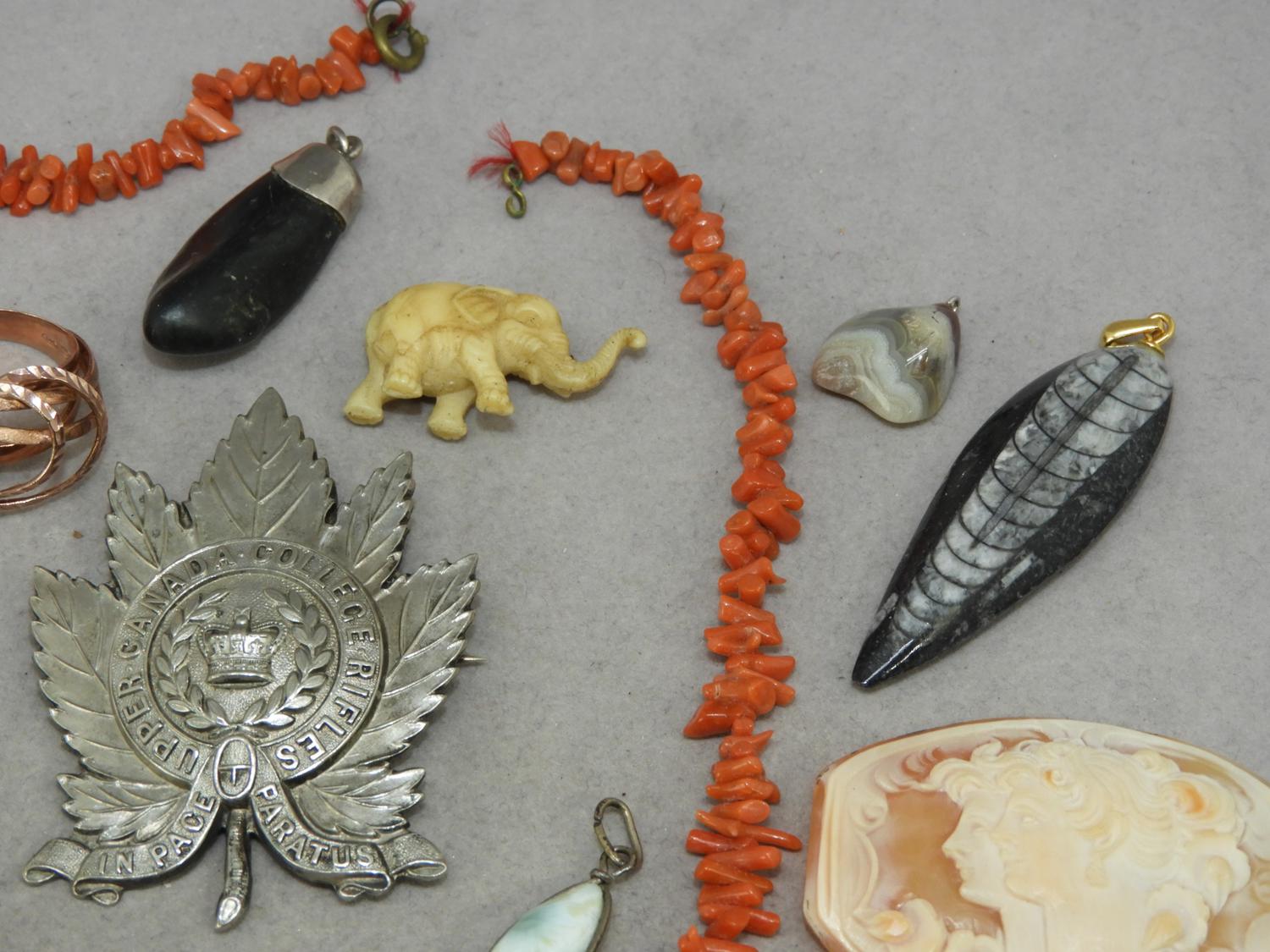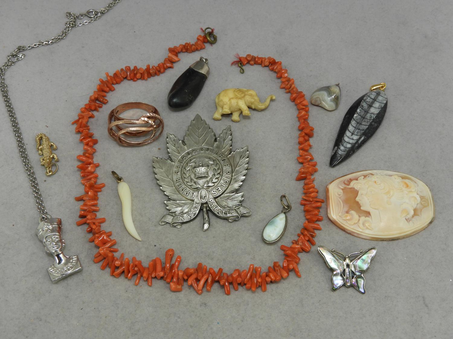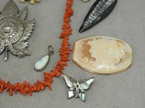 victorian branch coral necklace, unmounted cameo and sterling items