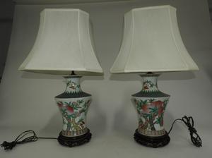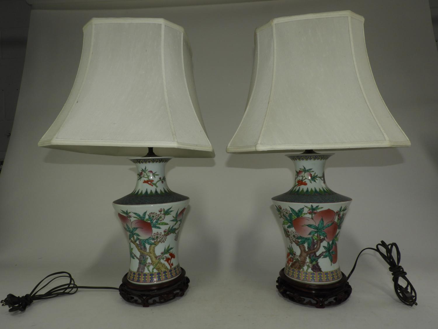pair of asian porcelain vase table lamps, ht. 28 1/2"