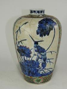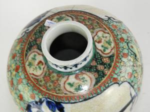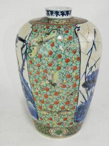 19th century chinese famille vert vase, ht. 12 1/4" - restored to one side