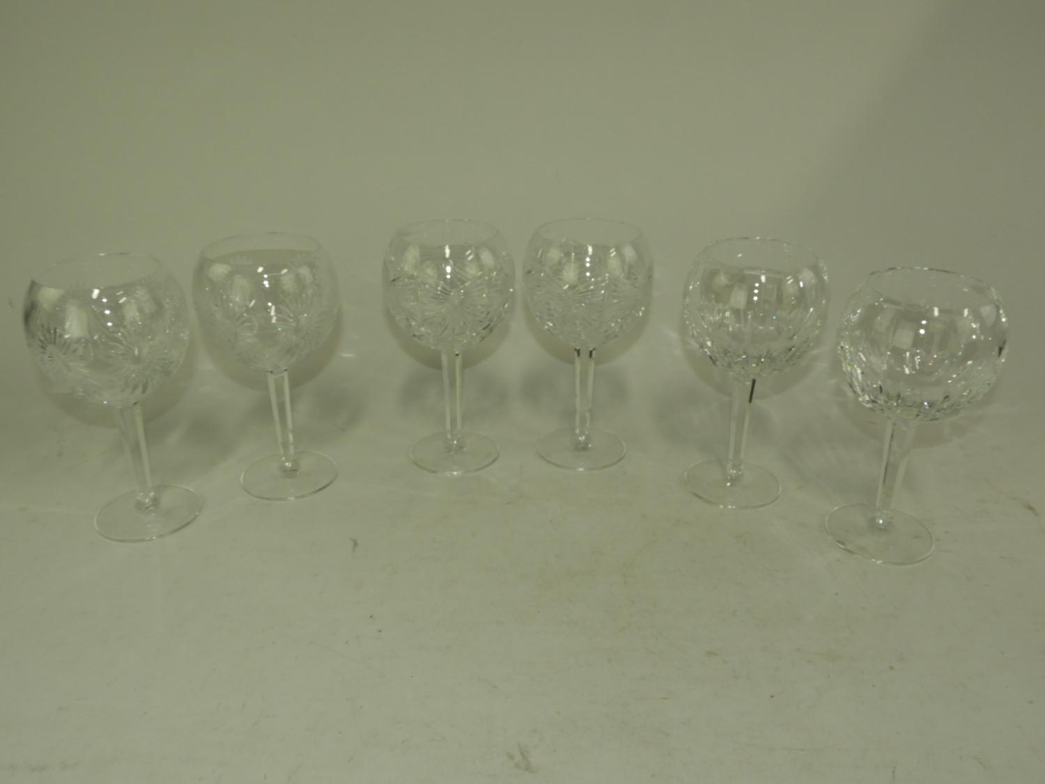 three pairs of large waterford crystal red wine stem glasses, ht. 7 3/4"