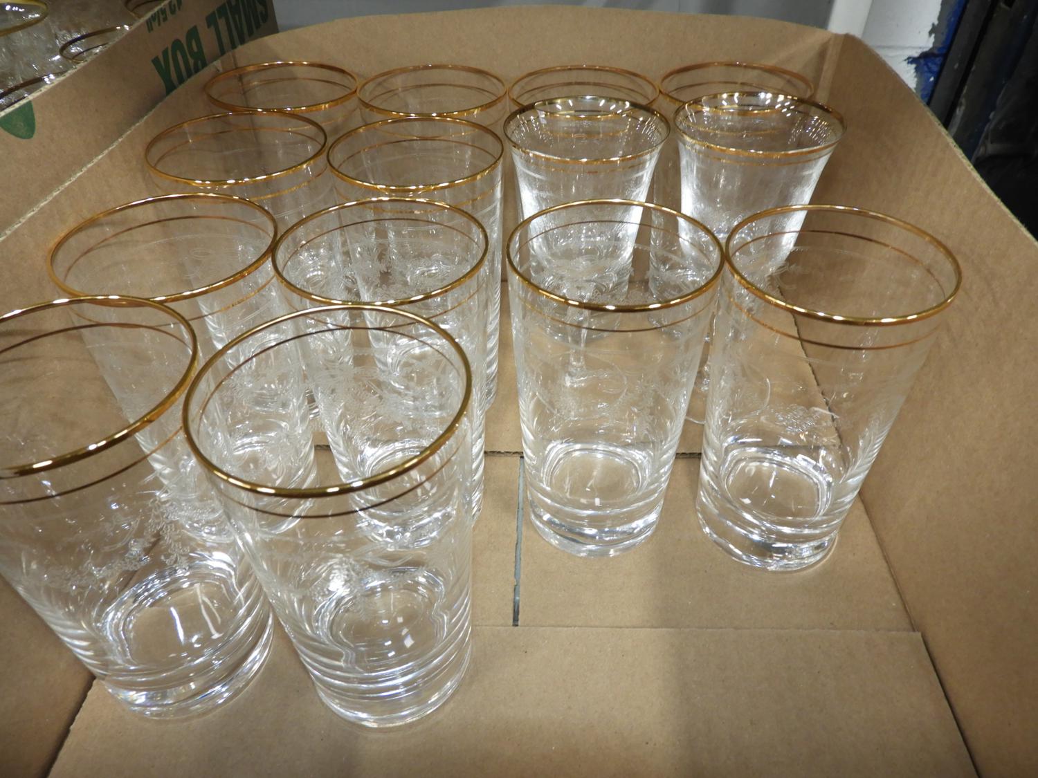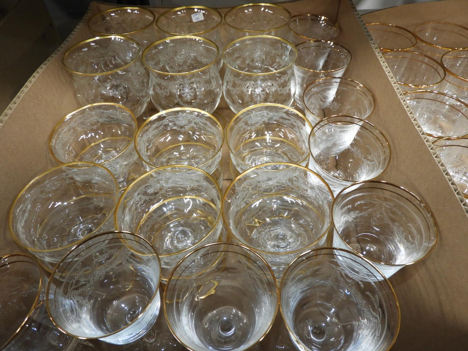 lot of etched gilt rim glassware