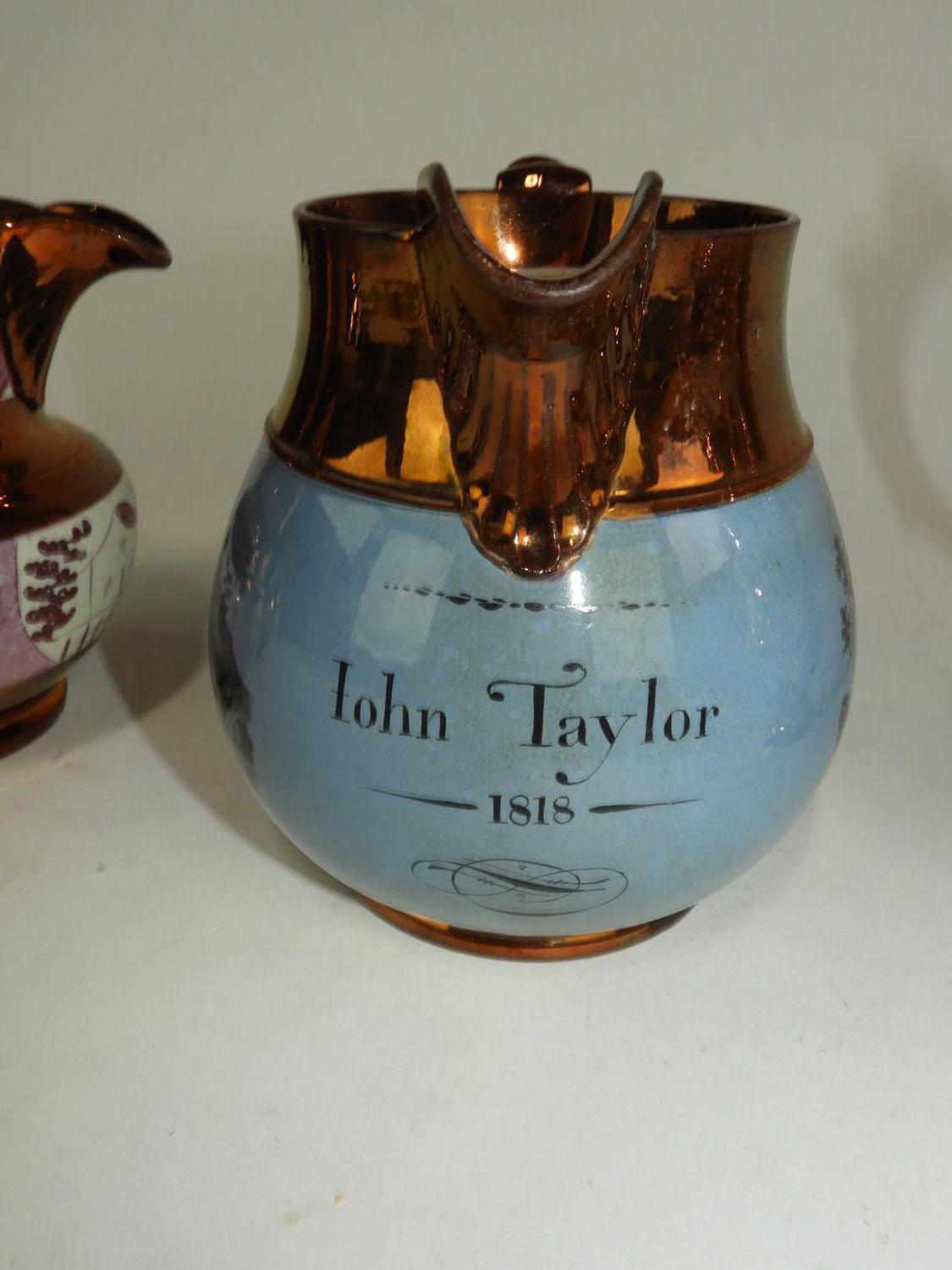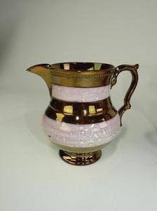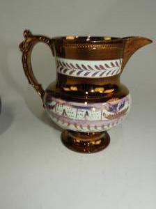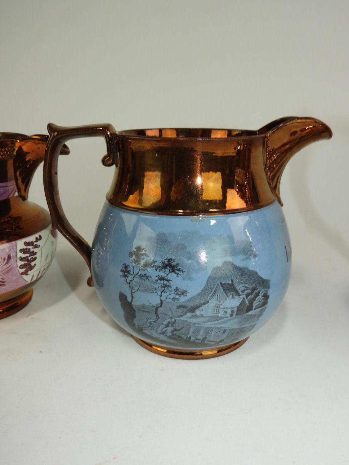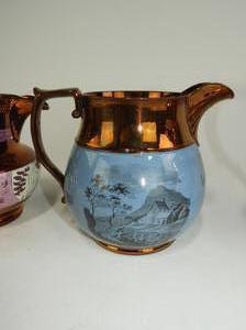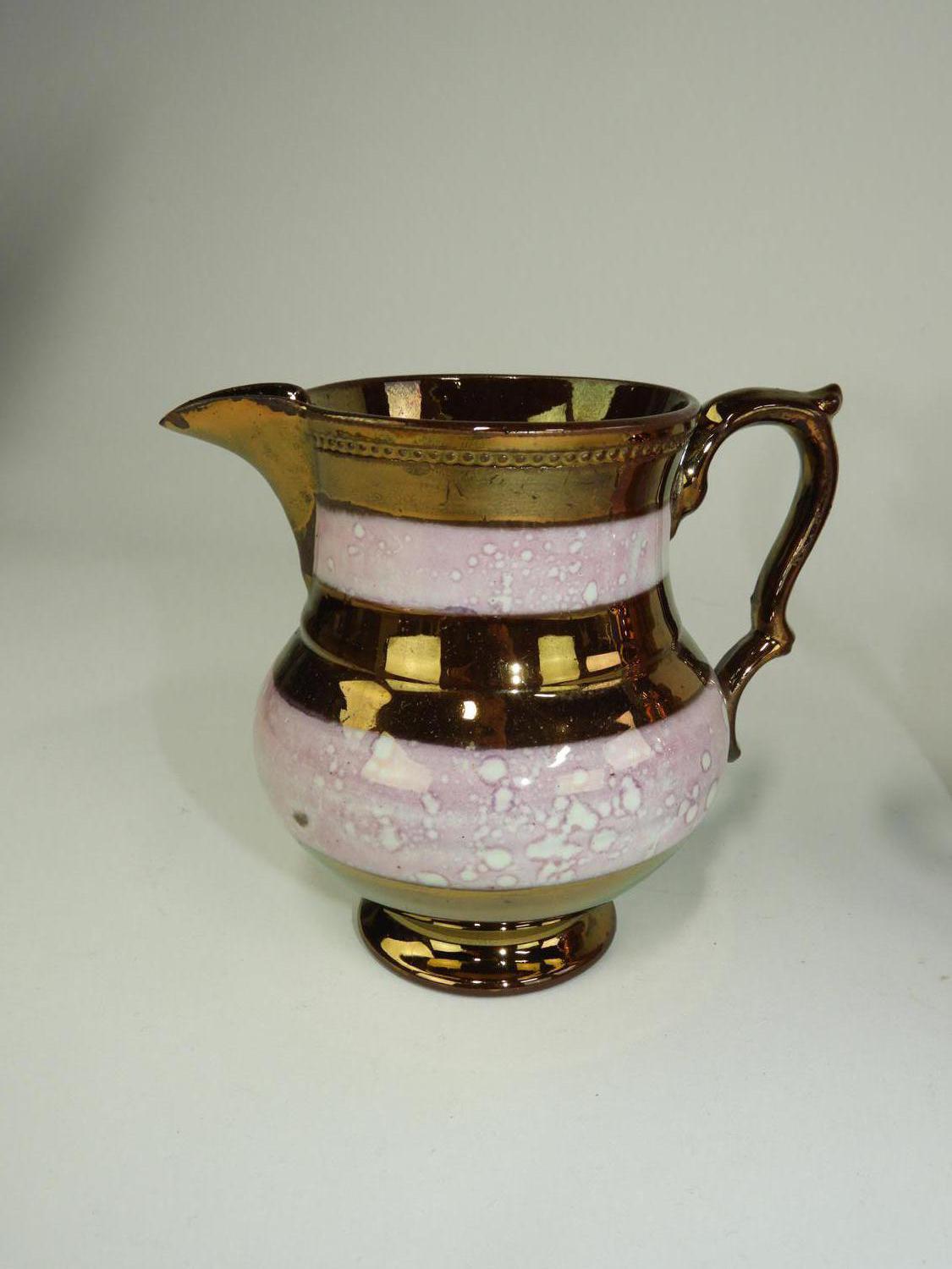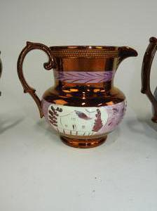 lot of four 19th century lustre pitchers, ht 6"