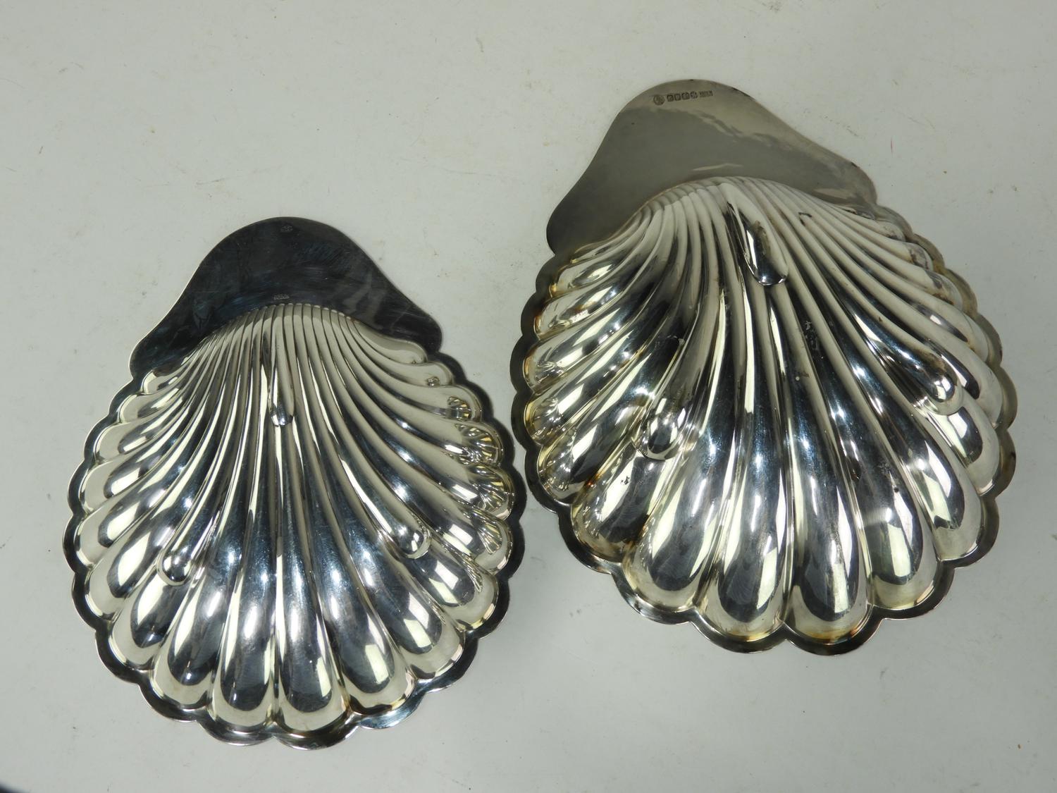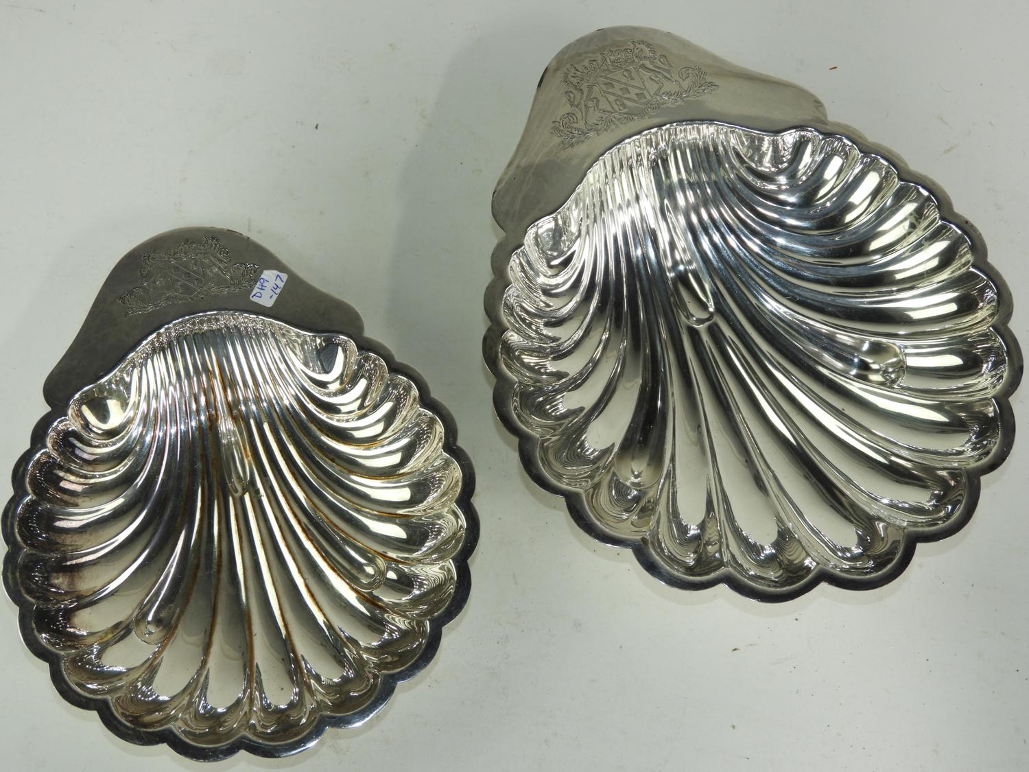 two graduated shell form sheffield silver plated dishes, 2" x 10" x 8" and smaller