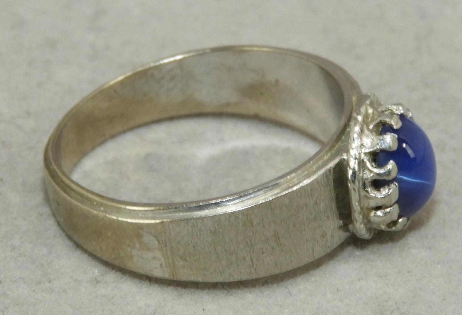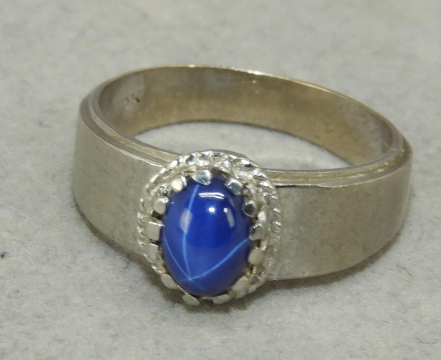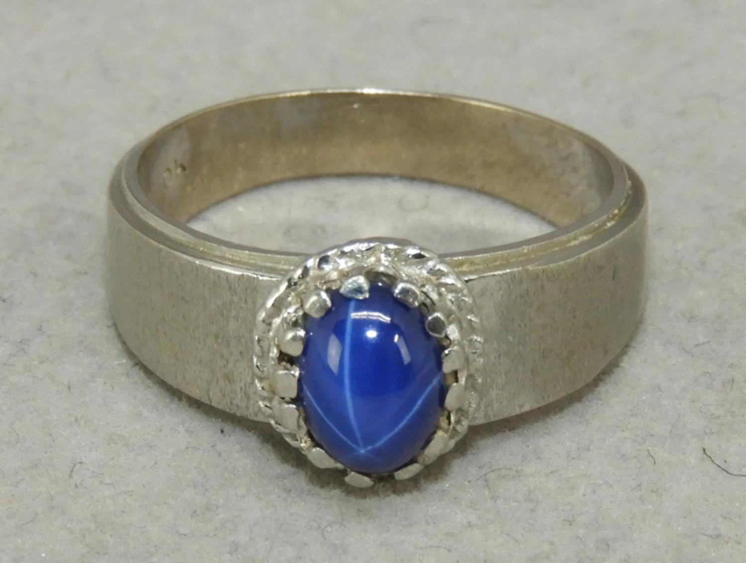 10k white gold synthetic star sapphire ring, size 6 3/4