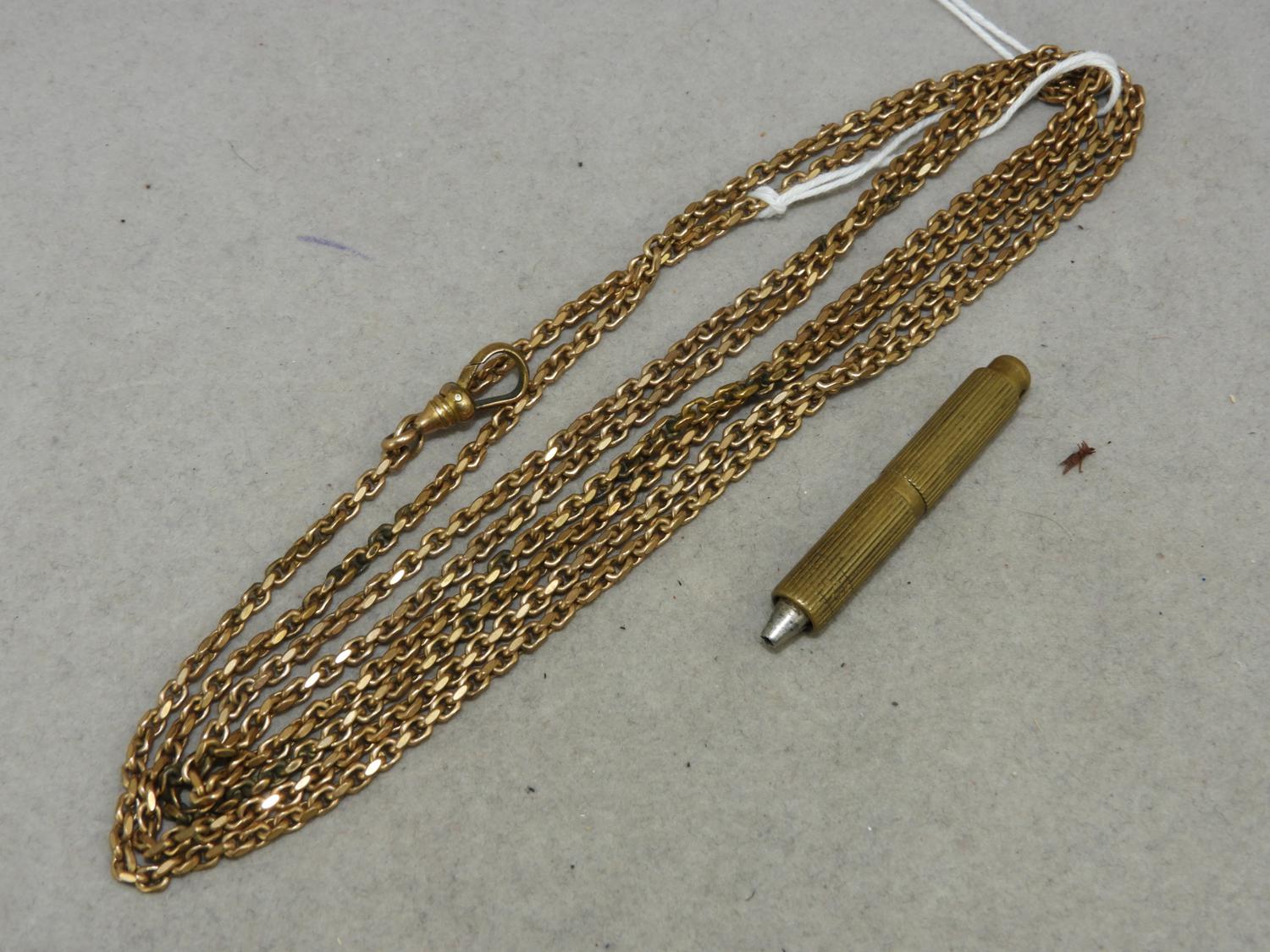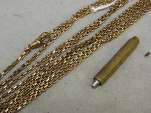 victorian gold filled watch chain with rotating pencil