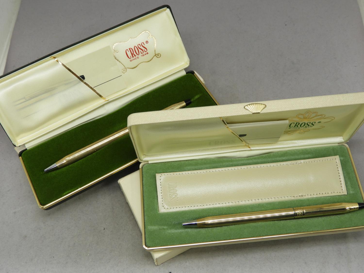 two gold filled cross pens in boxes