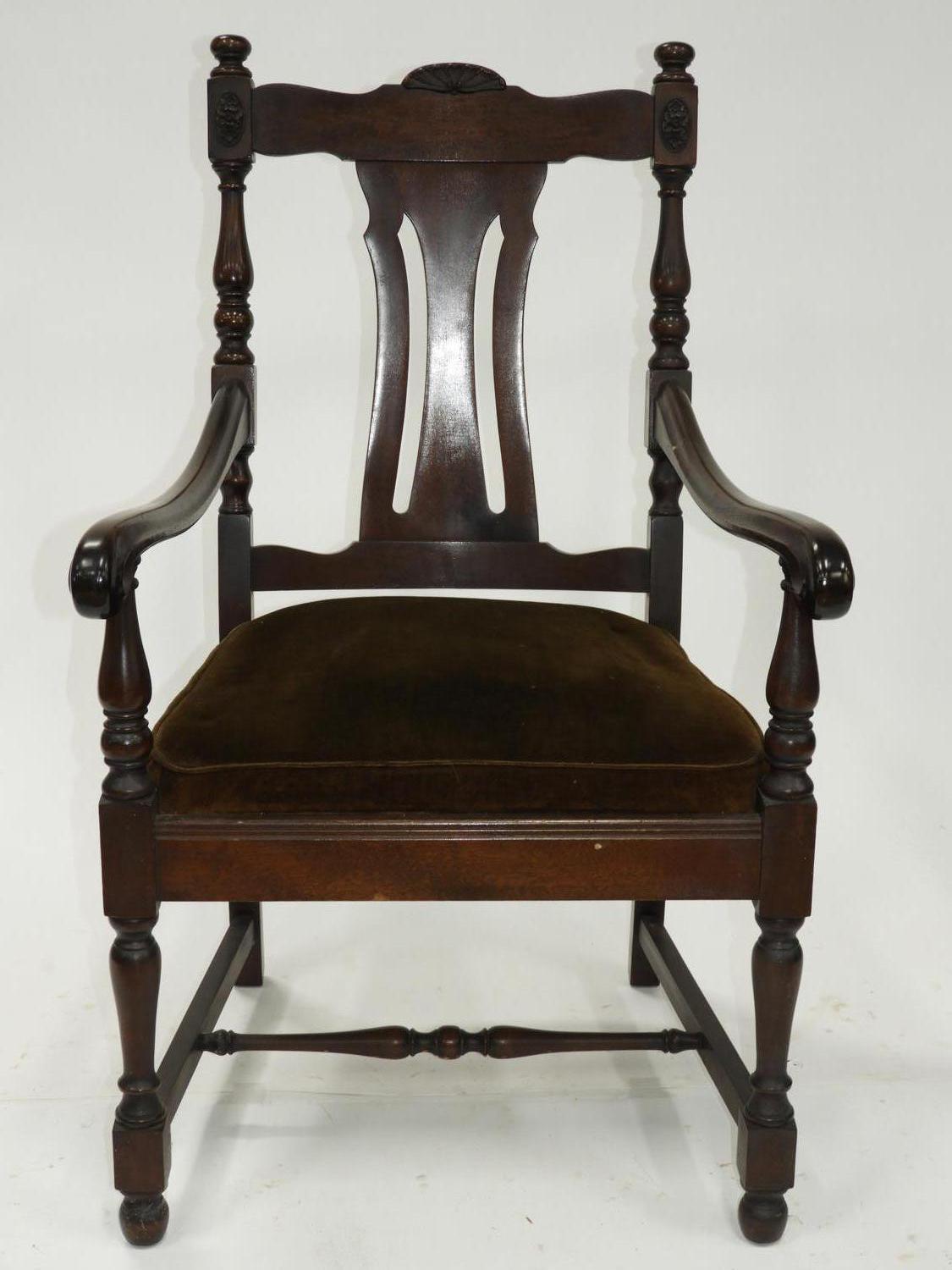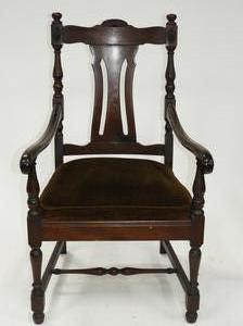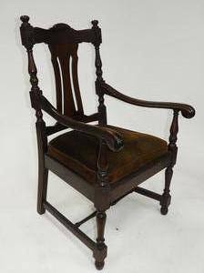 edwardian walnut finish open armchair with trap seat, c.1900, 40 1/2" x 24" x 25"