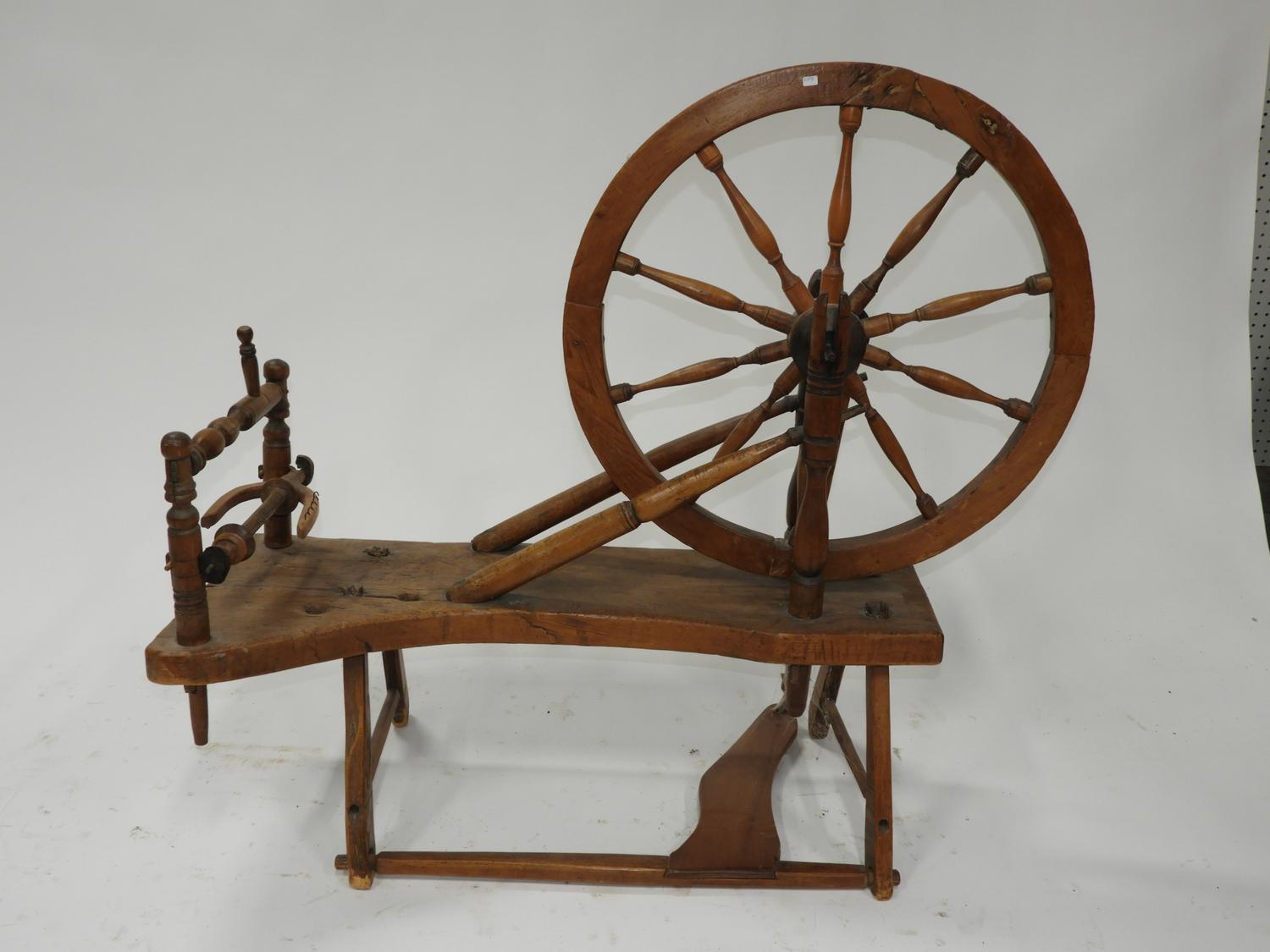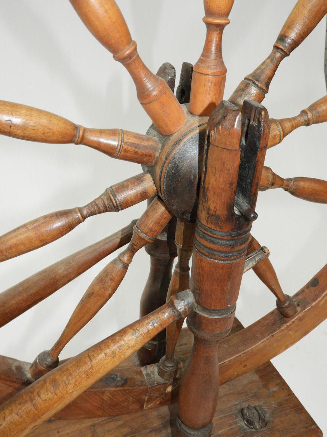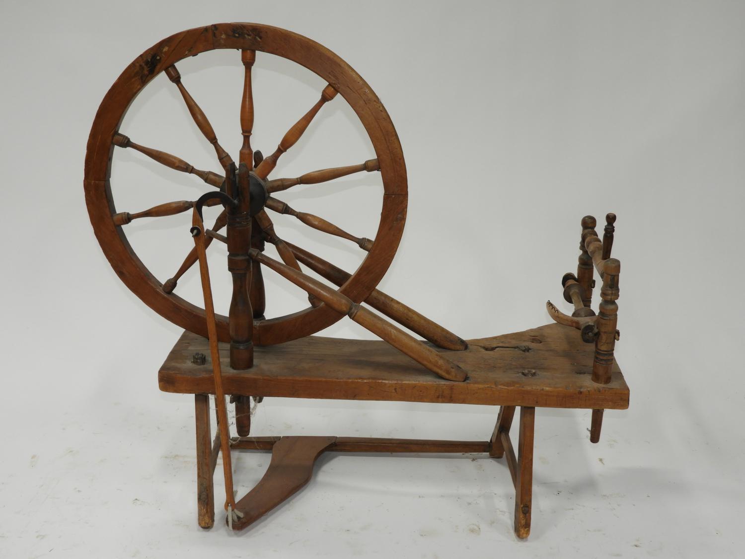 19th century canadiana pine spinning wheel, 38" x 40" x 15"