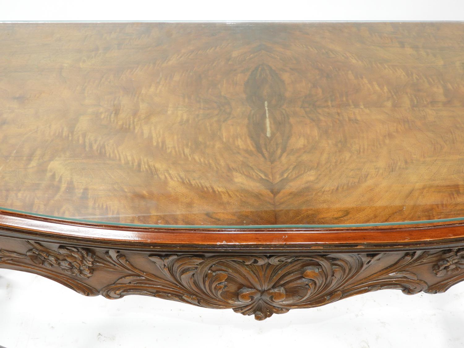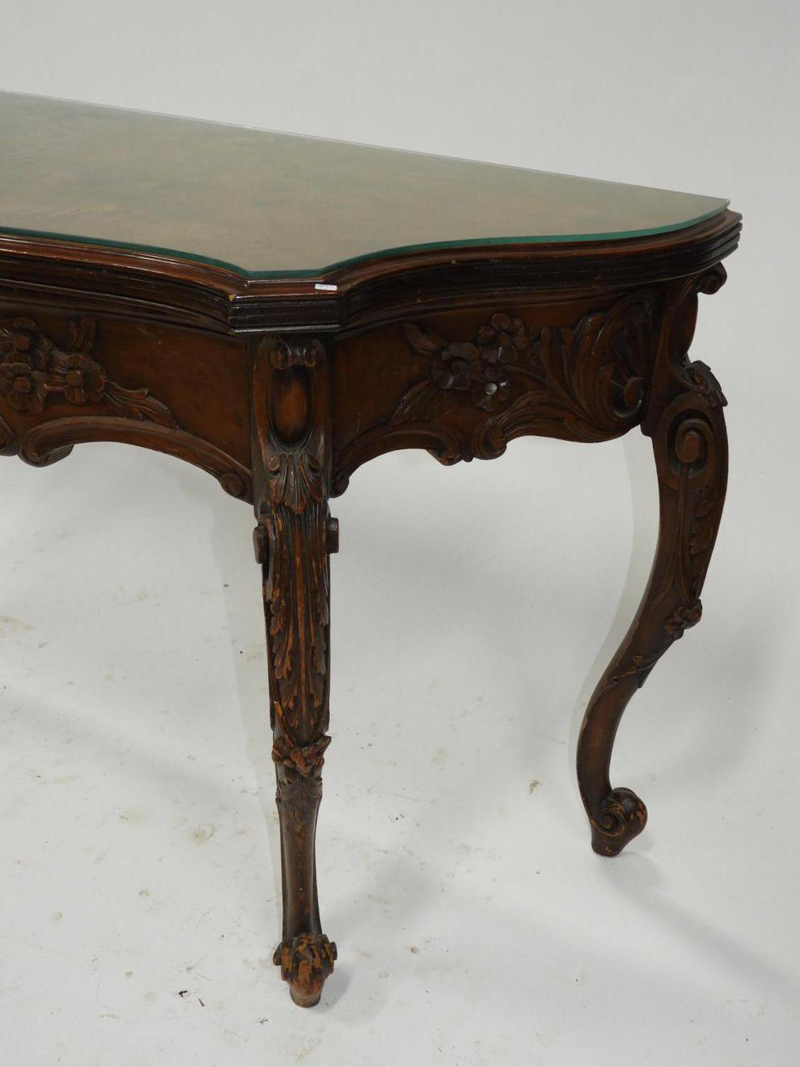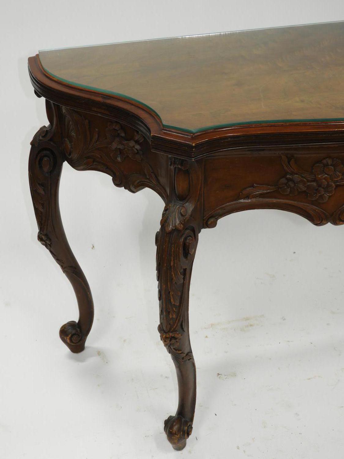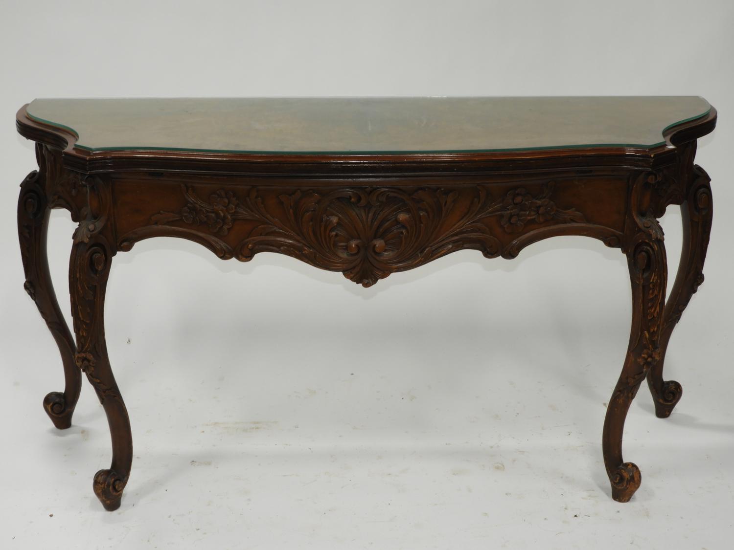carved walnut fold-over console table, c.1940, 31" x 60" x 20"