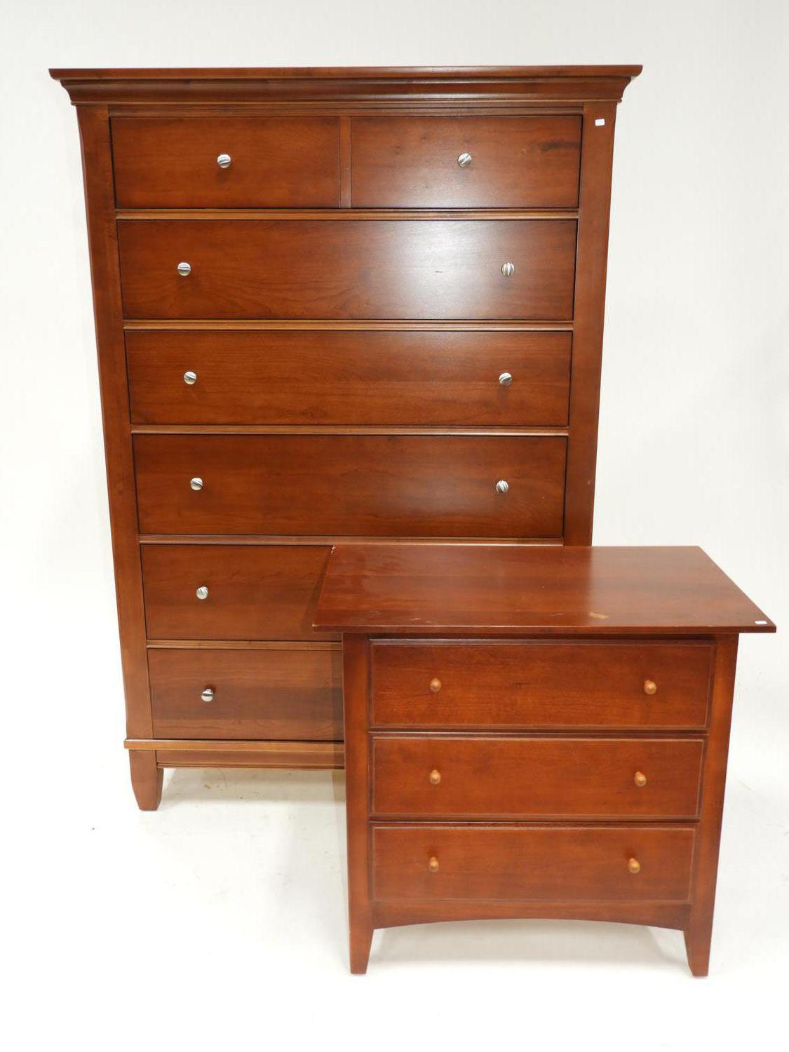 thomasville cherry finish hi-boy chest of drawers with a simular smaller chest, 60 1/2" x 42" x 19"