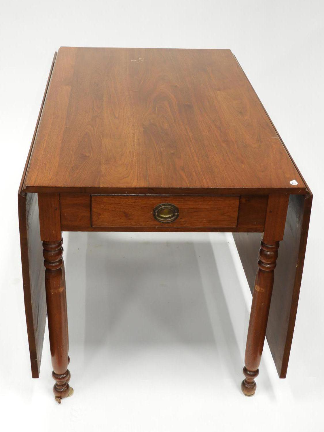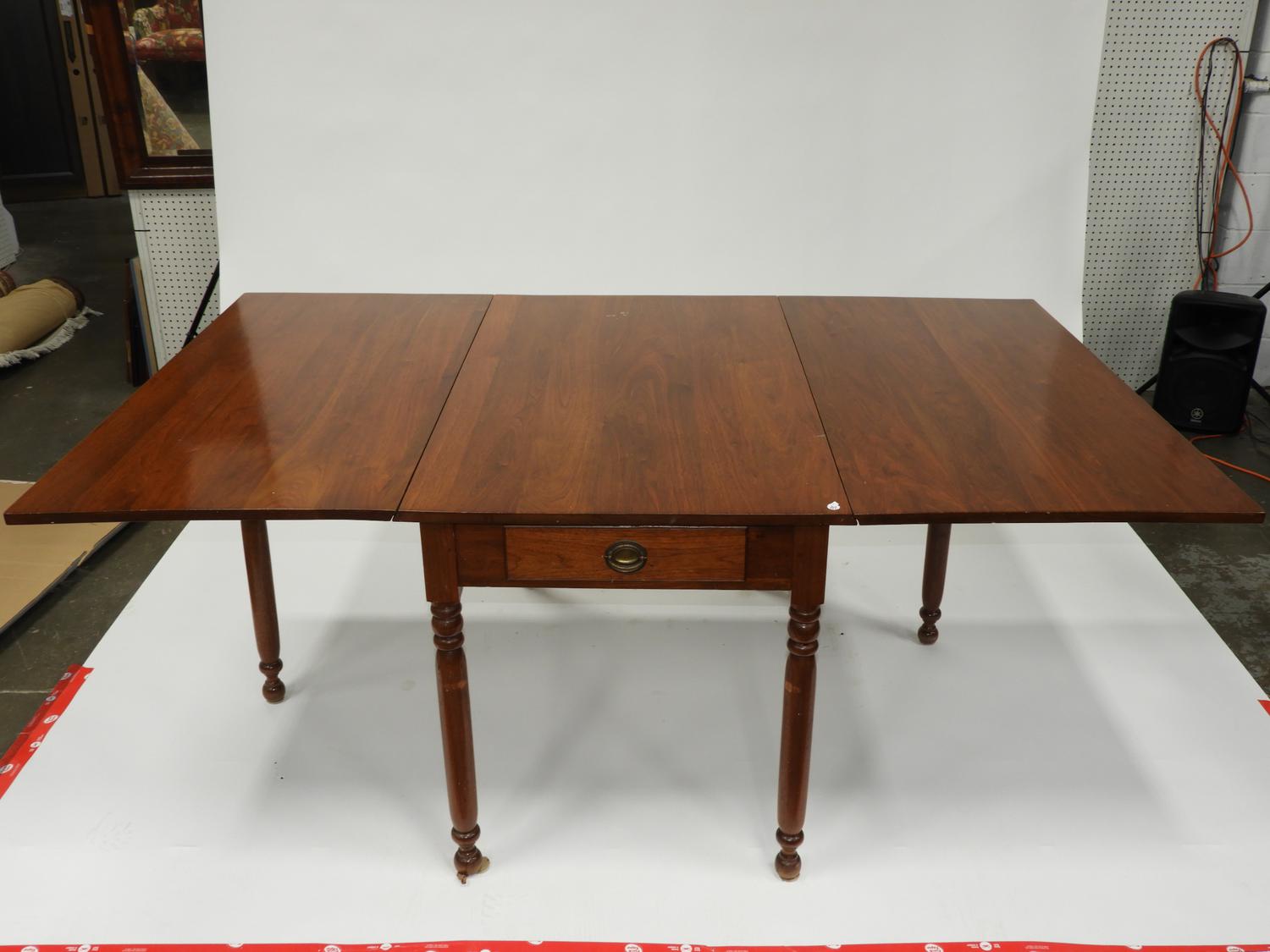 american drop leaf gate leg table with turned legs, mid 20th century, 30" x 77" x 48"