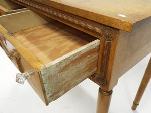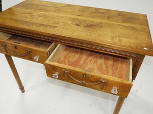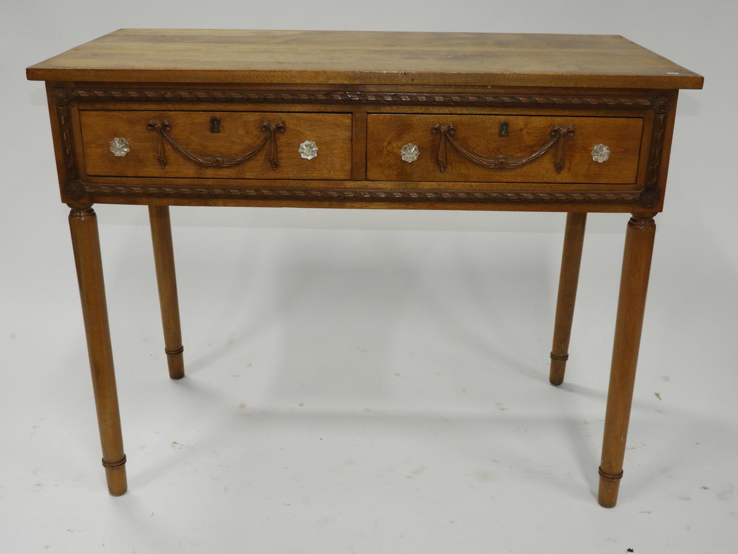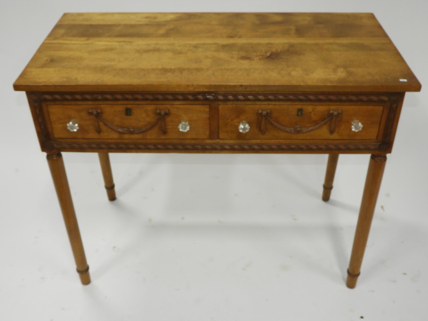 maple finiah two drawer dressing/writing table decorated with ribbon tied swags, early 20th century, 30" x 38" x 19"