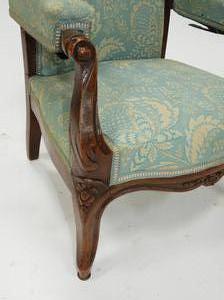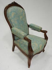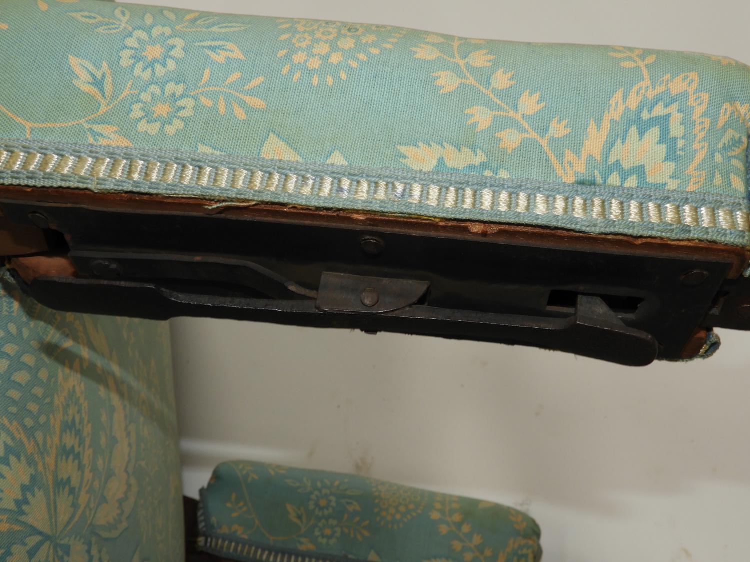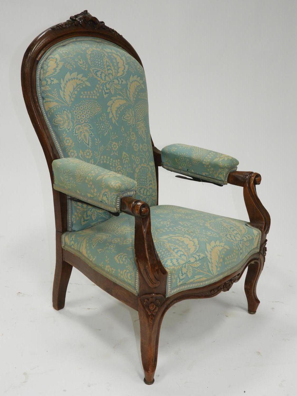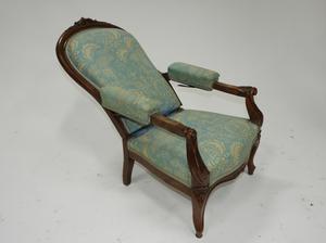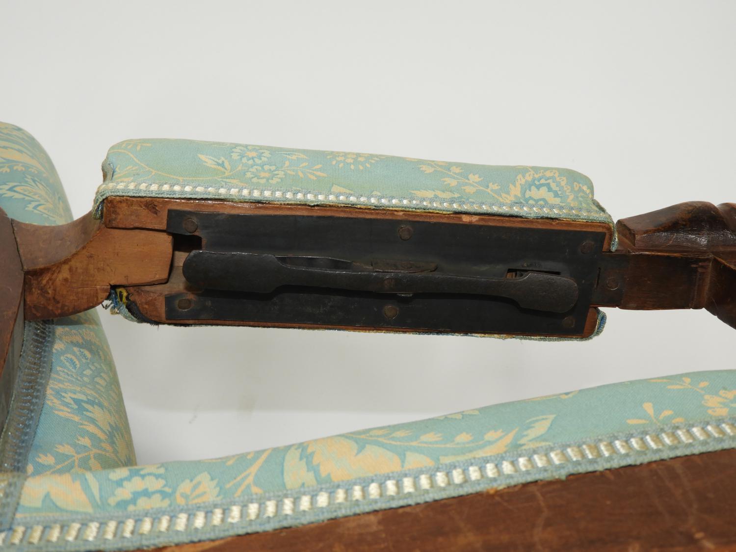 19th century child-size carved and upholstered armchair with reclining mechanism, 31" x 19" x 20"