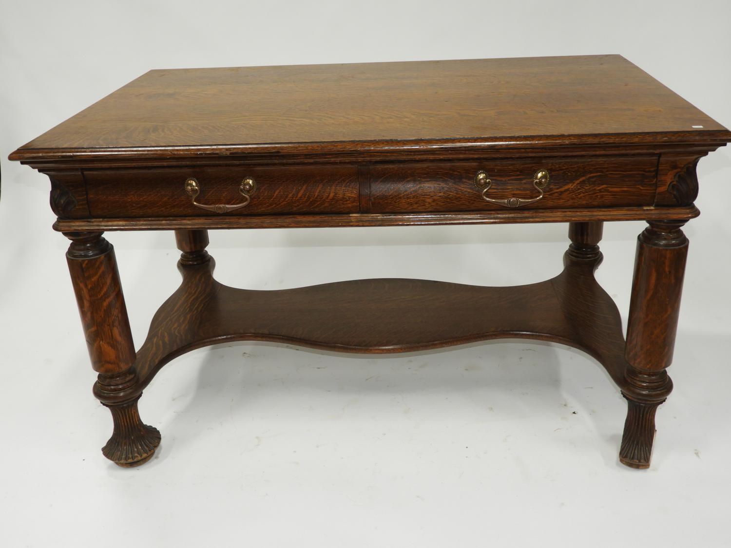 edwardian oak library table, c.1900, 28 1/2" x 48" x 30"