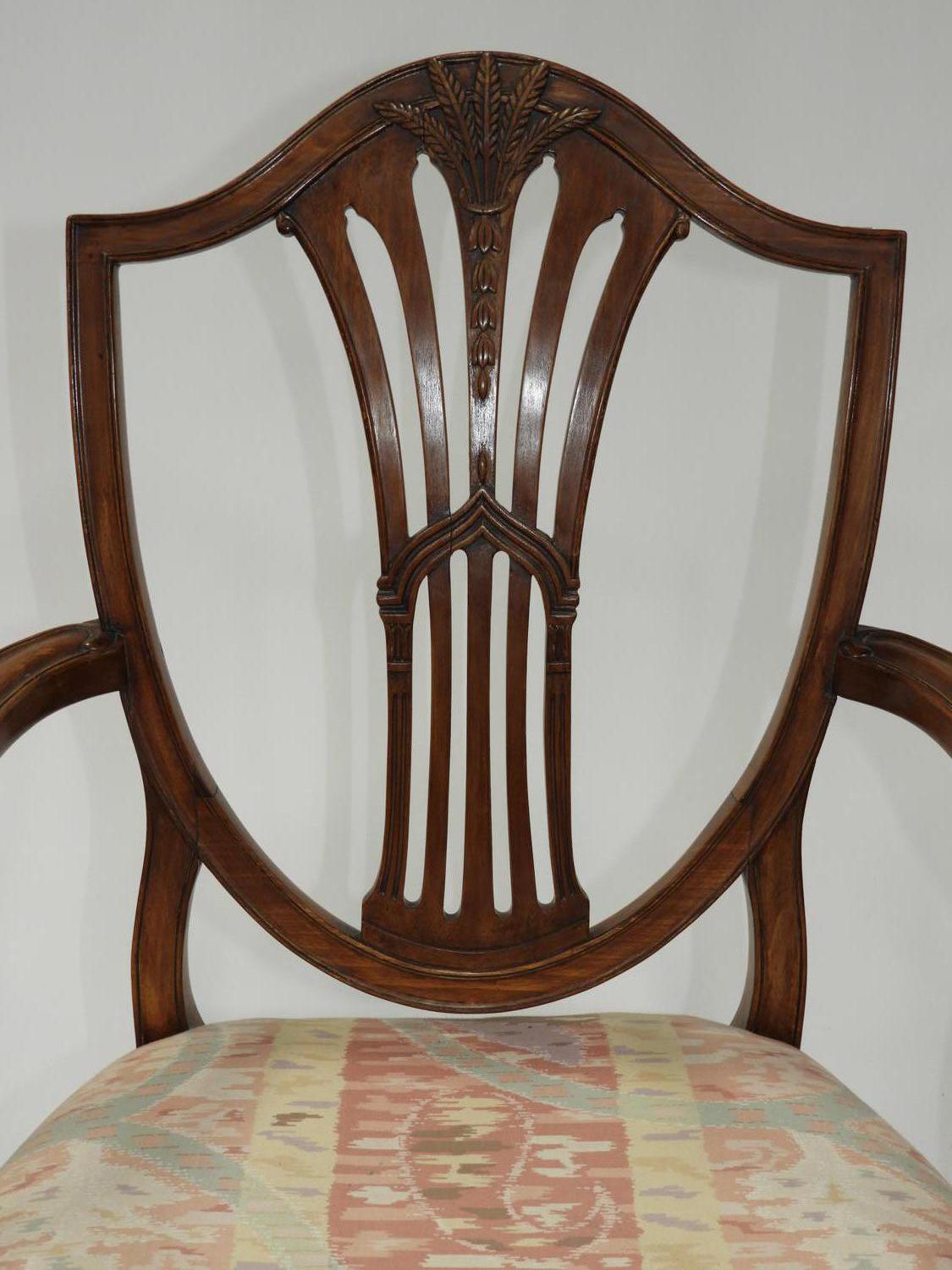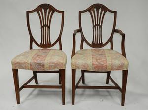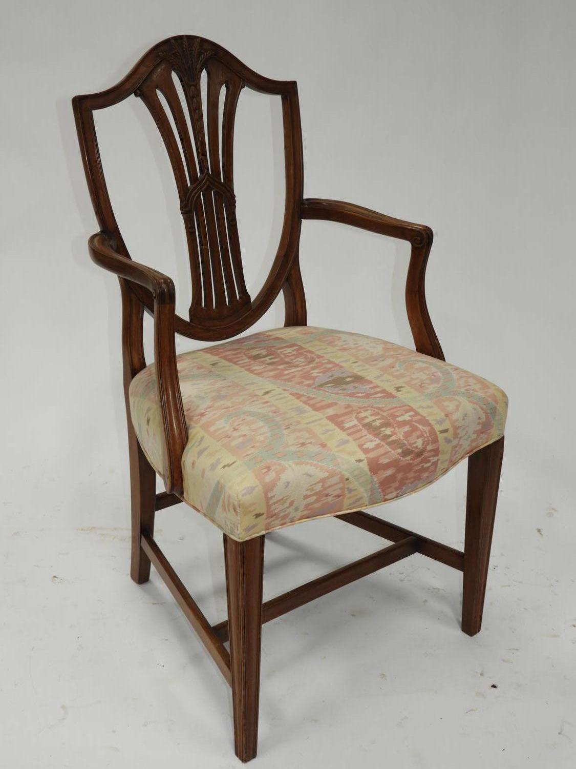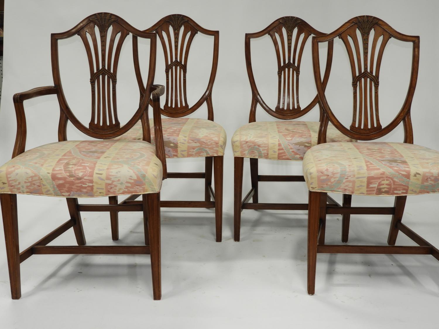 set of four hepplewhite style mahogany chairs including one armchair, english c.1900