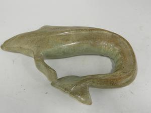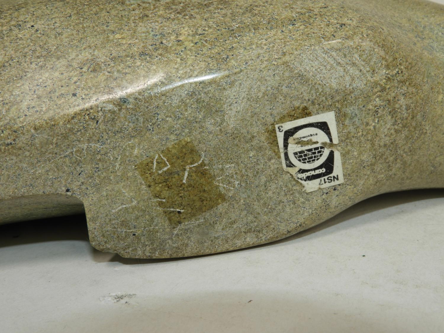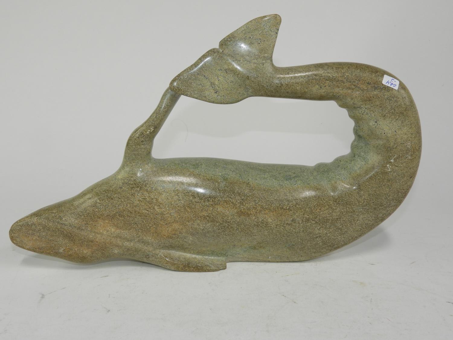 inuit carved soapstone whale, signed, 10" x 15" x 3"