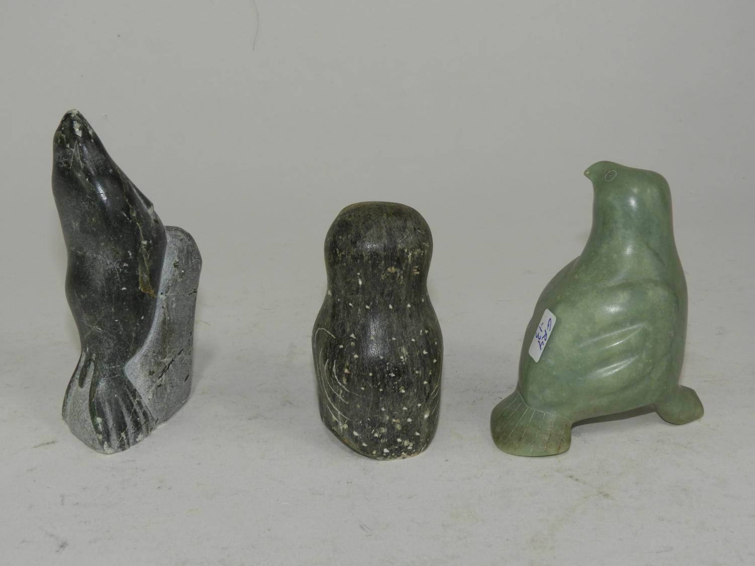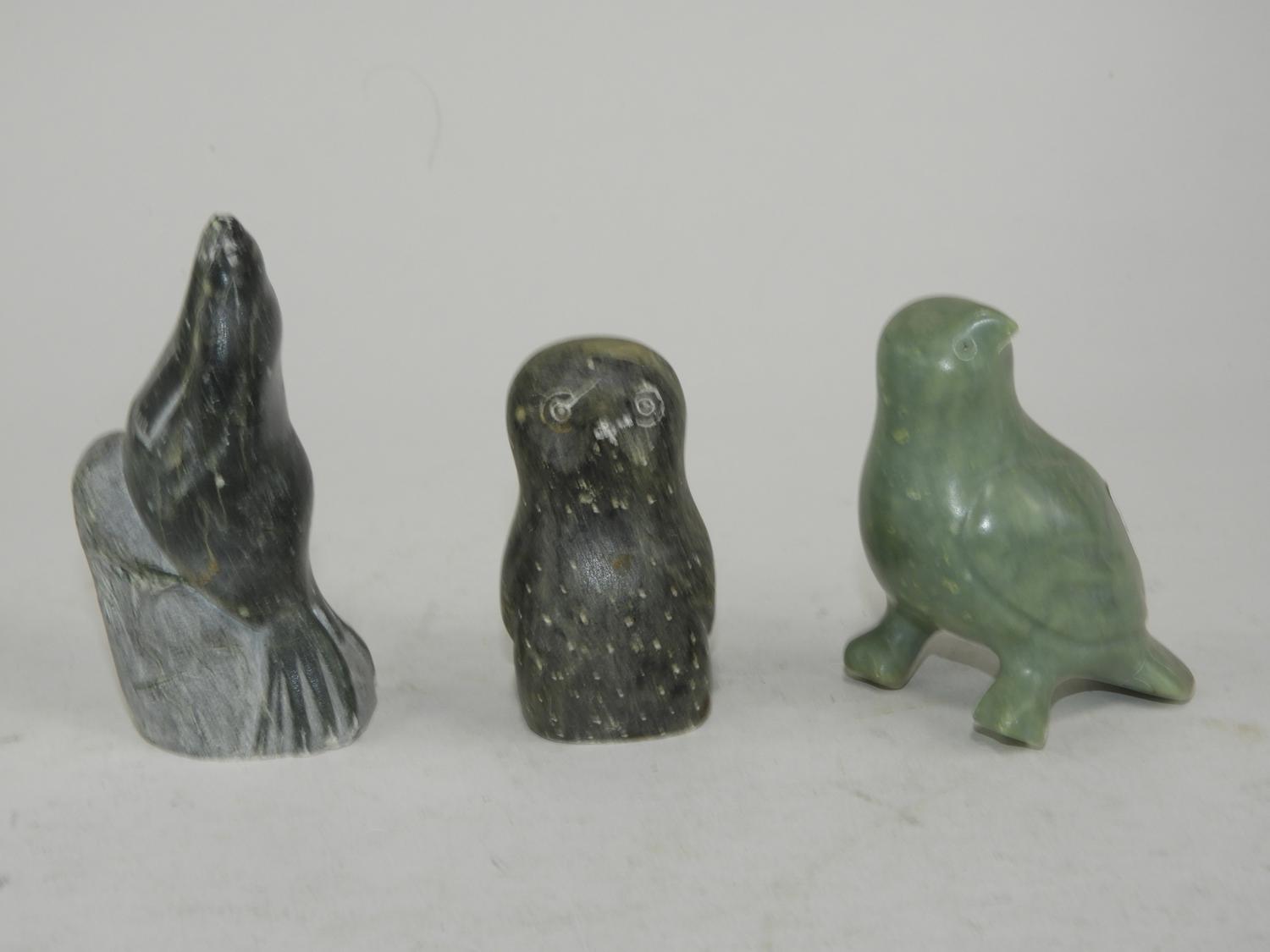 inuit carved seal and two birds, 4 1/2" and smaller
