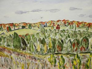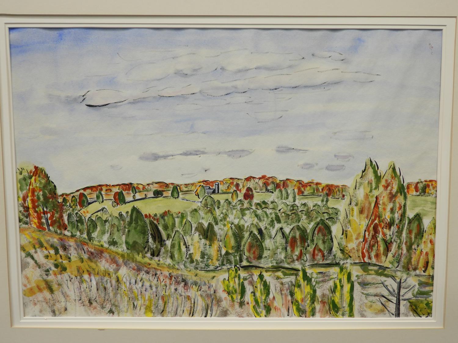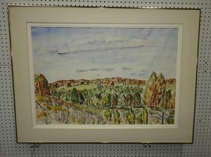 joan arden murray (b.1943), watercolour, d.1987, 25" x 36", "fall landscape"