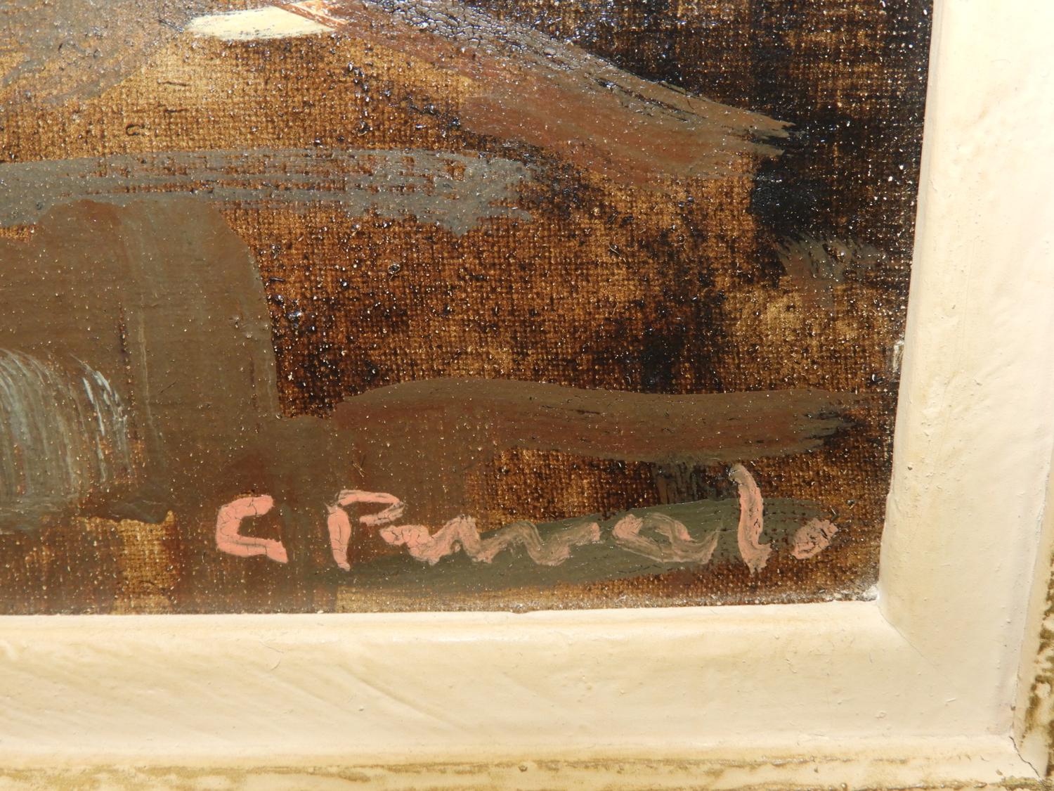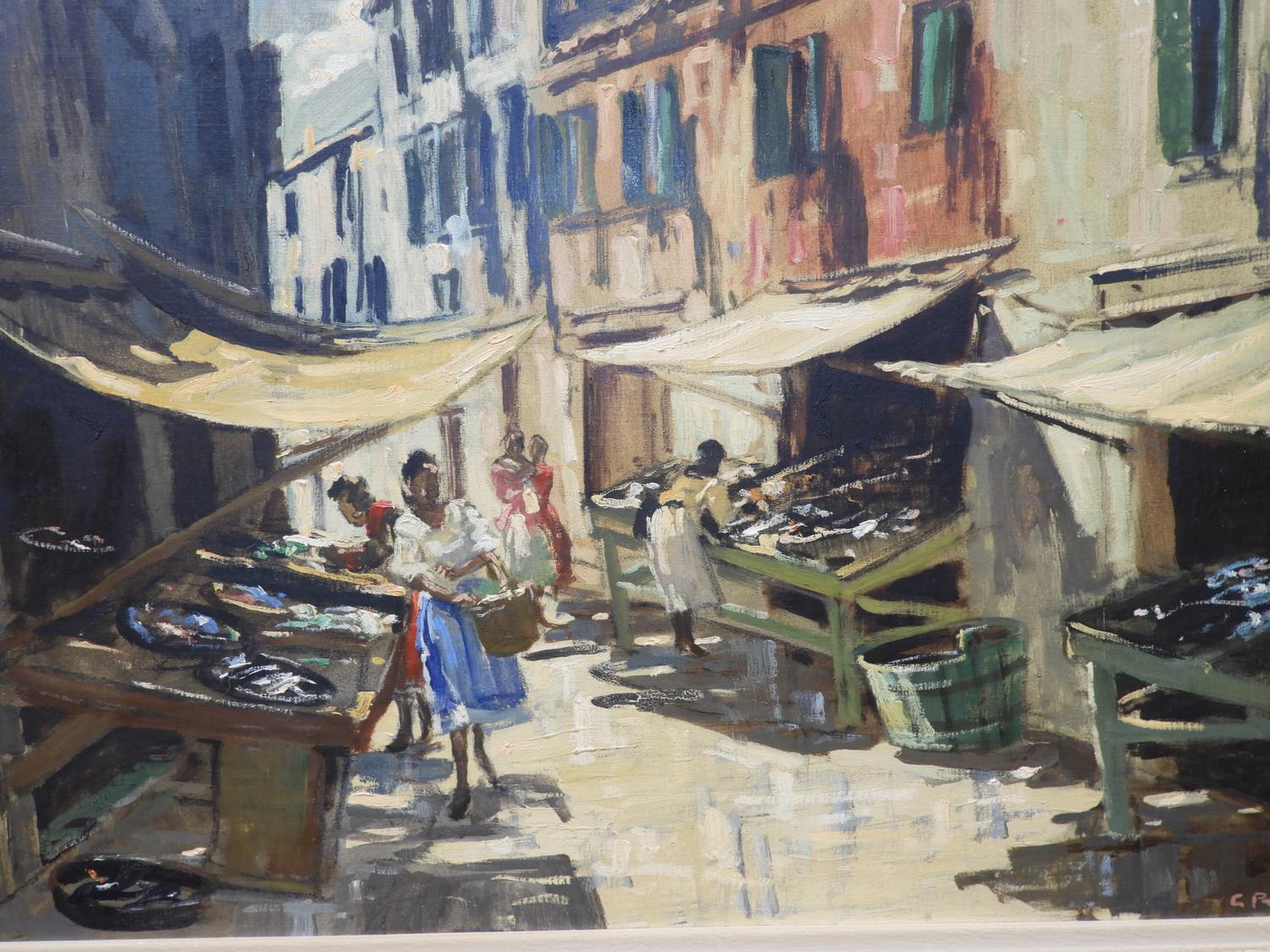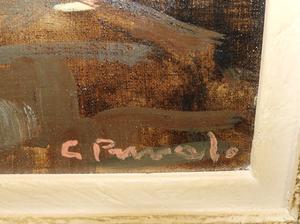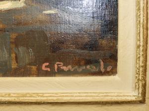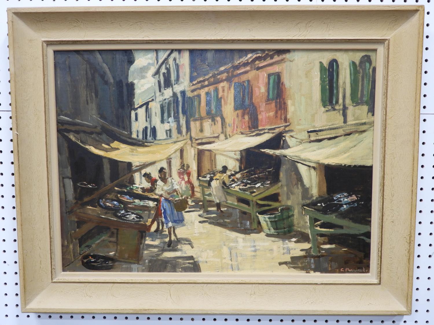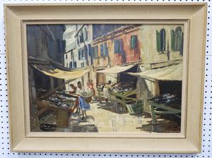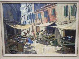 cosimo privato (1899-1971), oil on board, 20" x 27", "market scene with figures"