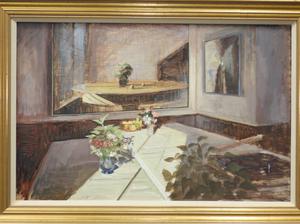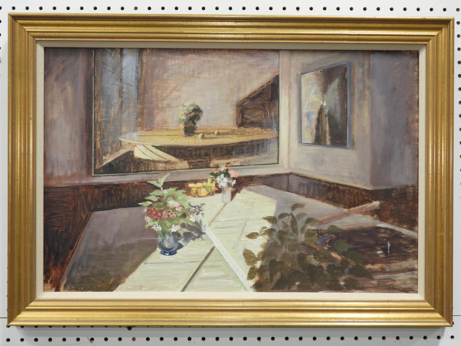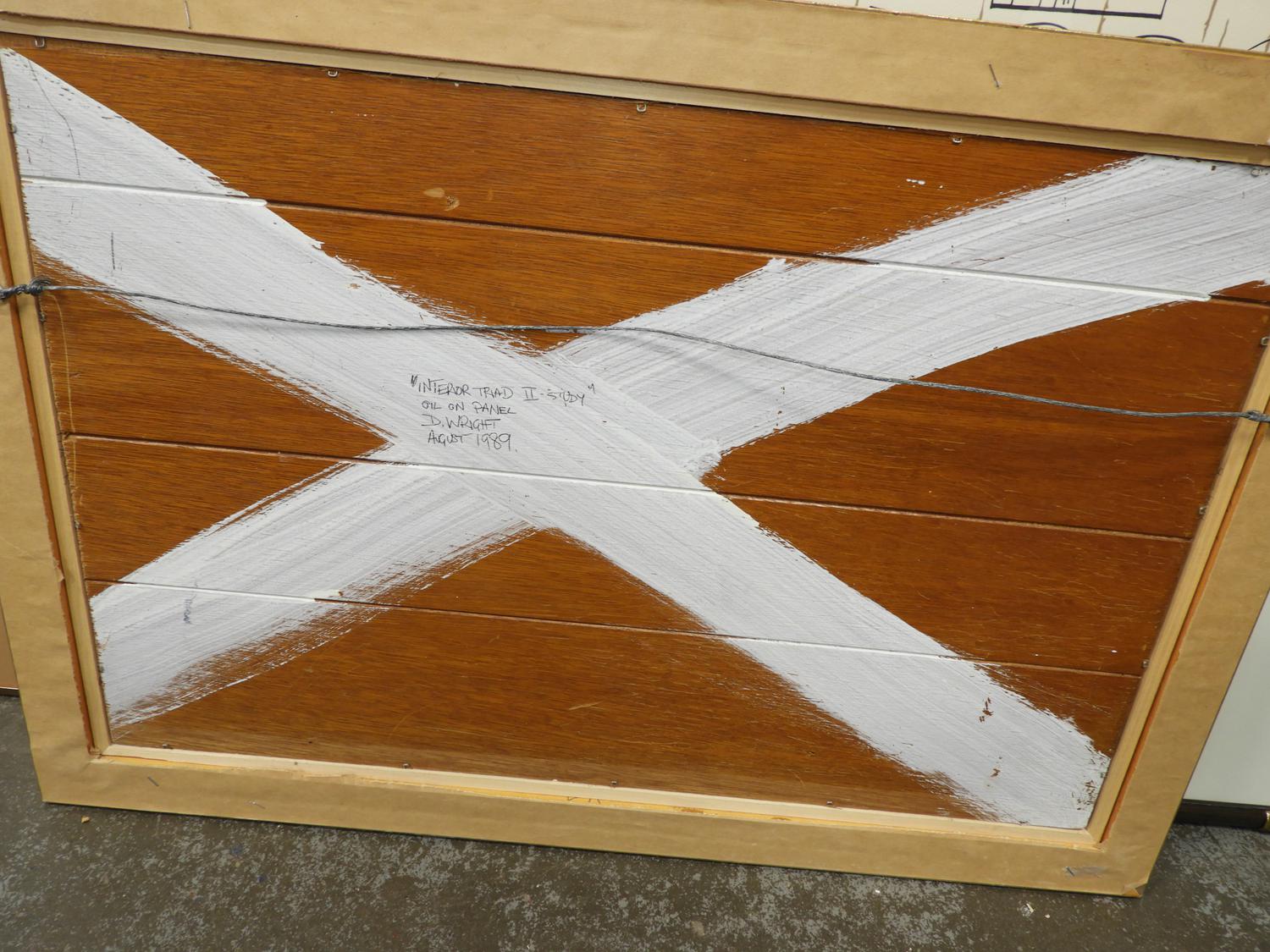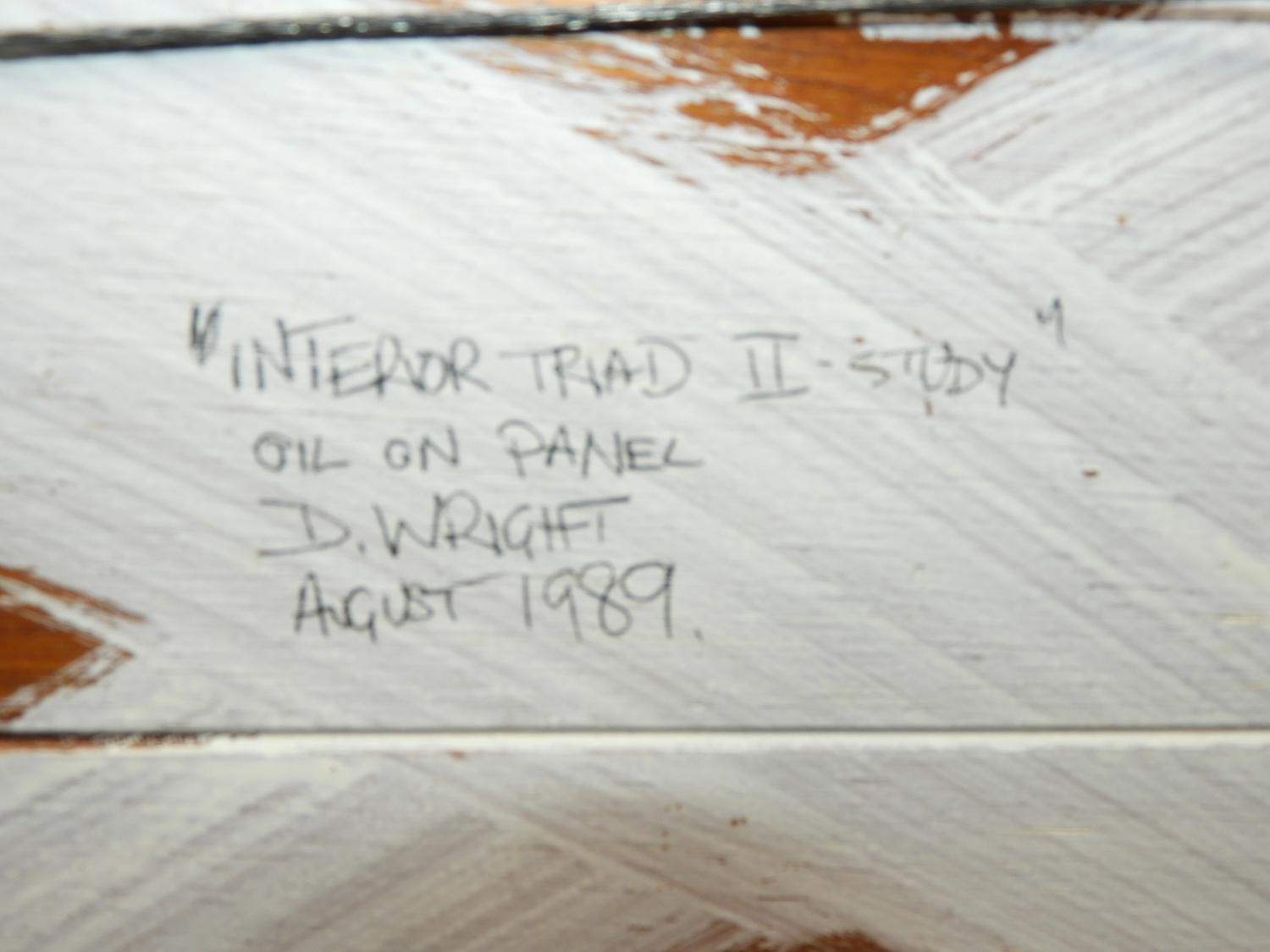 d. wright, d.1989, oil on panel, 16" x 27", "interior triad ii - study"